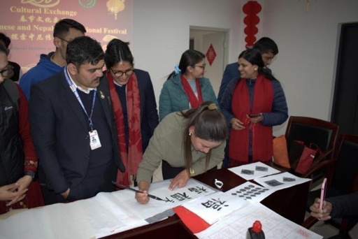 写春联是中国春节的重要传统之一,象征着对新年的美好祝愿。学员们在老师罗吉美的指导下认真练习如何用毛笔写“福”字和春联。