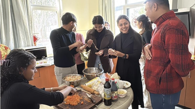 在包饺子的过程中,孔院教师们向学员讲解了饺子在中国春节中的文化意义,并介绍了各地不同的饺子做法。“我发现饺子和Momo很像,但饺子的皮更薄,包法也有不同。”学员Prasun Bhandari兴奋地分享道,“用饺子皮包肉馅需要技巧,不能让它破掉。包好后,看着自己做的饺子下锅,真的很有成就感!”
