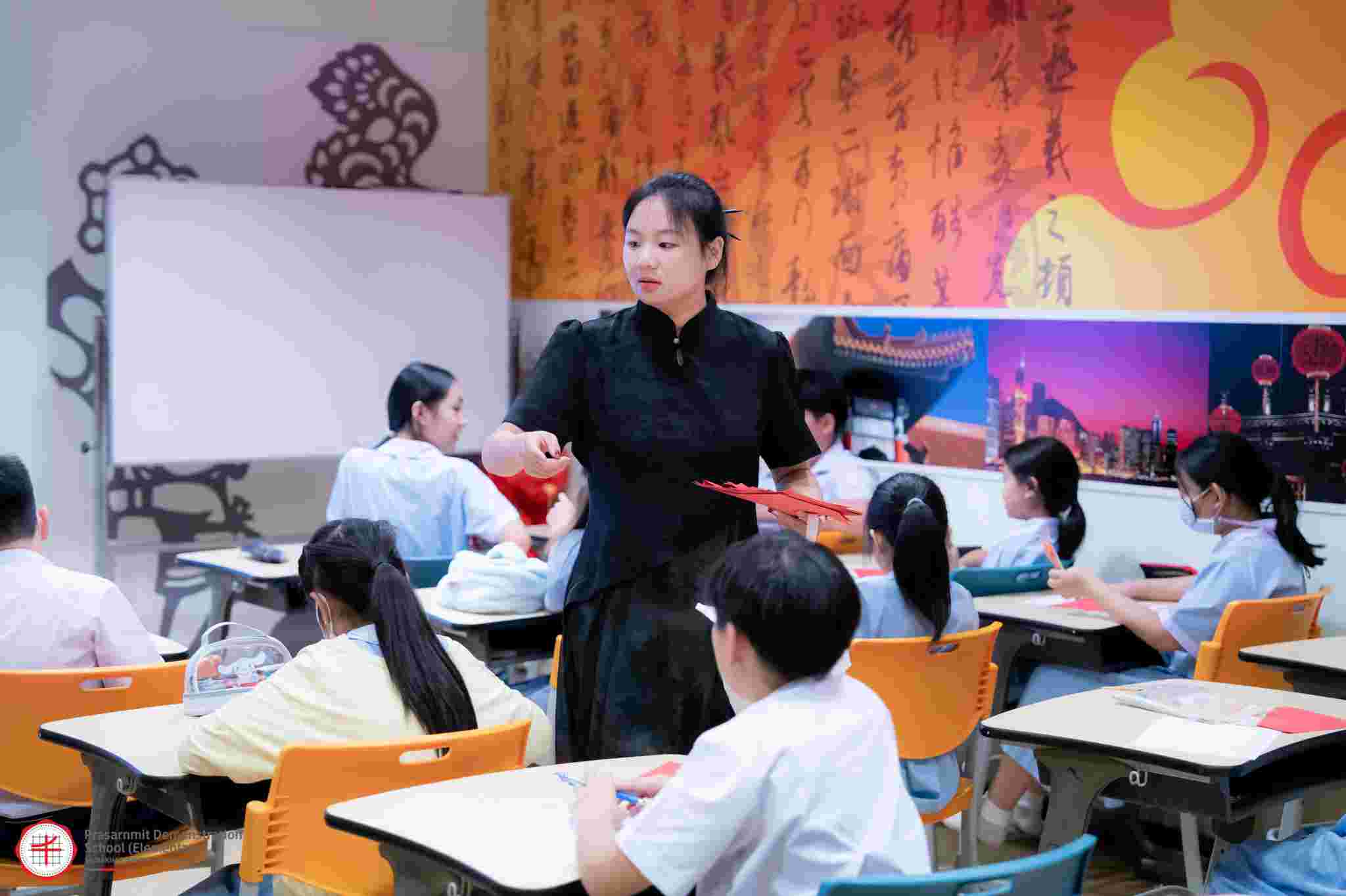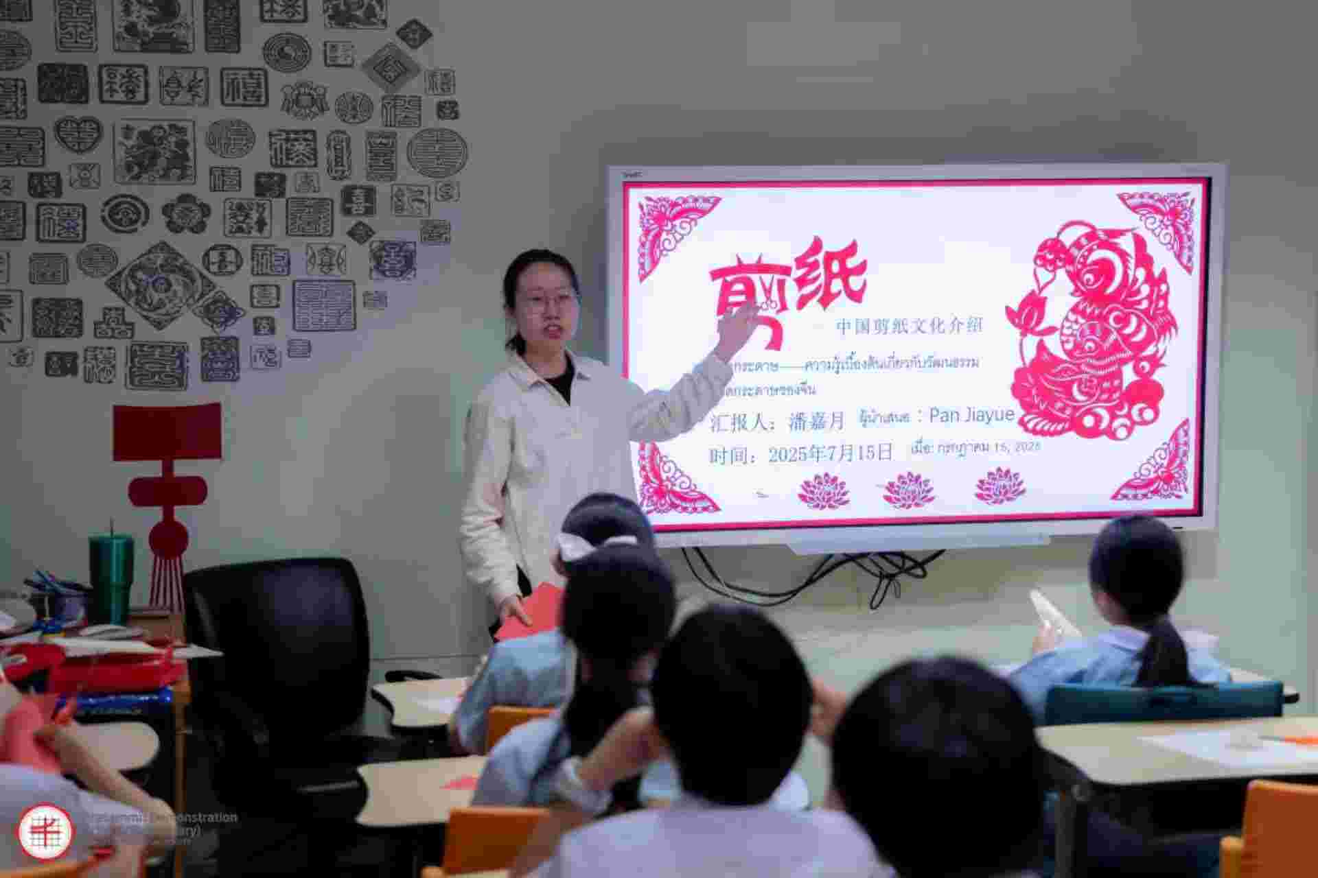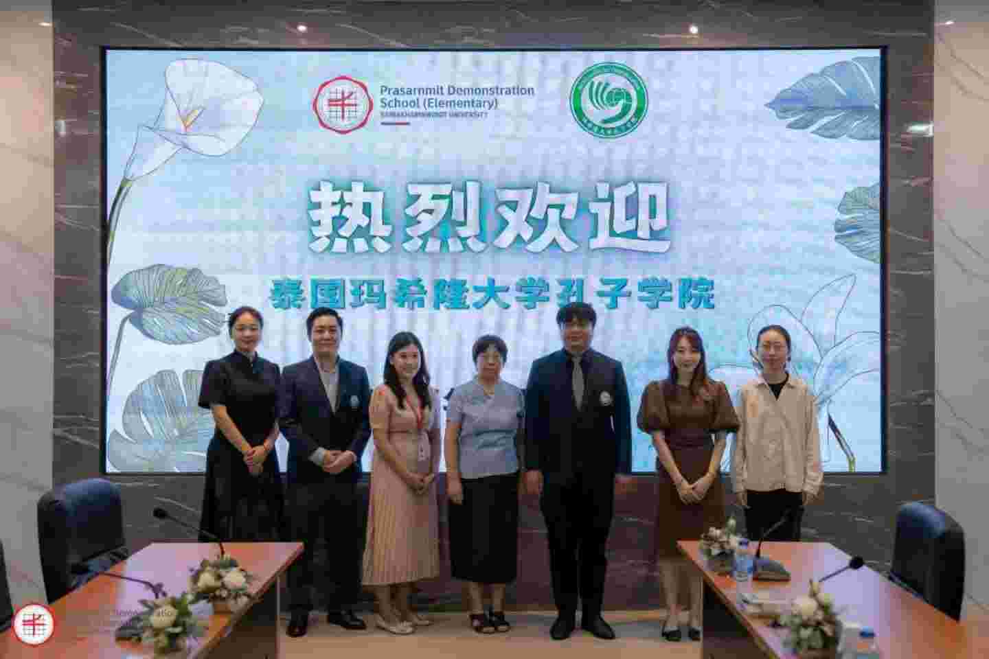 2025年7月15日,泰国玛希隆大学孔子学院中方院长林艳、泰方院长张曹武、泰方副院长王澜鹏及志愿者教师潘嘉月、李沂芳等人前往泰国诗纳卡琳威洛大学附属小学拜访参观,并为学校中文班4年级学生开展中国文化体验活动。