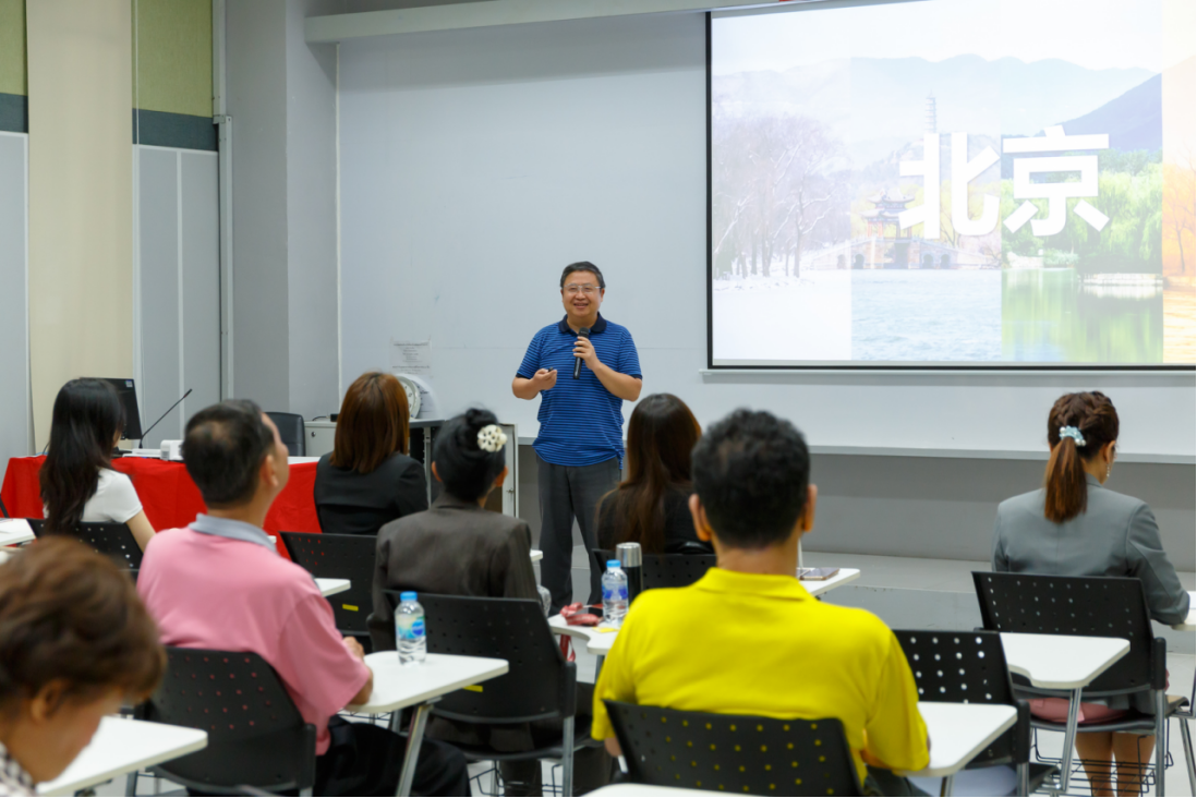 上午由吴平教授和张宝林教授进行分享。吴平教授的讲座以“北京城的景点”为主题,按照从一环到五环的顺序,逐一介绍了北京的各大景点,带领听众穿梭于北京城的风景名胜之间,感受北京独有的季节魅力与美食文化。吴教授向所有观众发出了“北京欢迎你”的诚挚邀请。