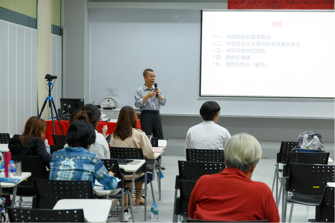 下午,王秋生教授以“颜色与中国文化”为题,系统介绍了中国颜色的分类及其背后的文化象征意义,通过丰富的历史典故与文化背景,揭示了颜色在中国文化中的独特地位与深刻内涵,激发了听众对中国传统文化的浓厚兴趣与深入探索的愿望。