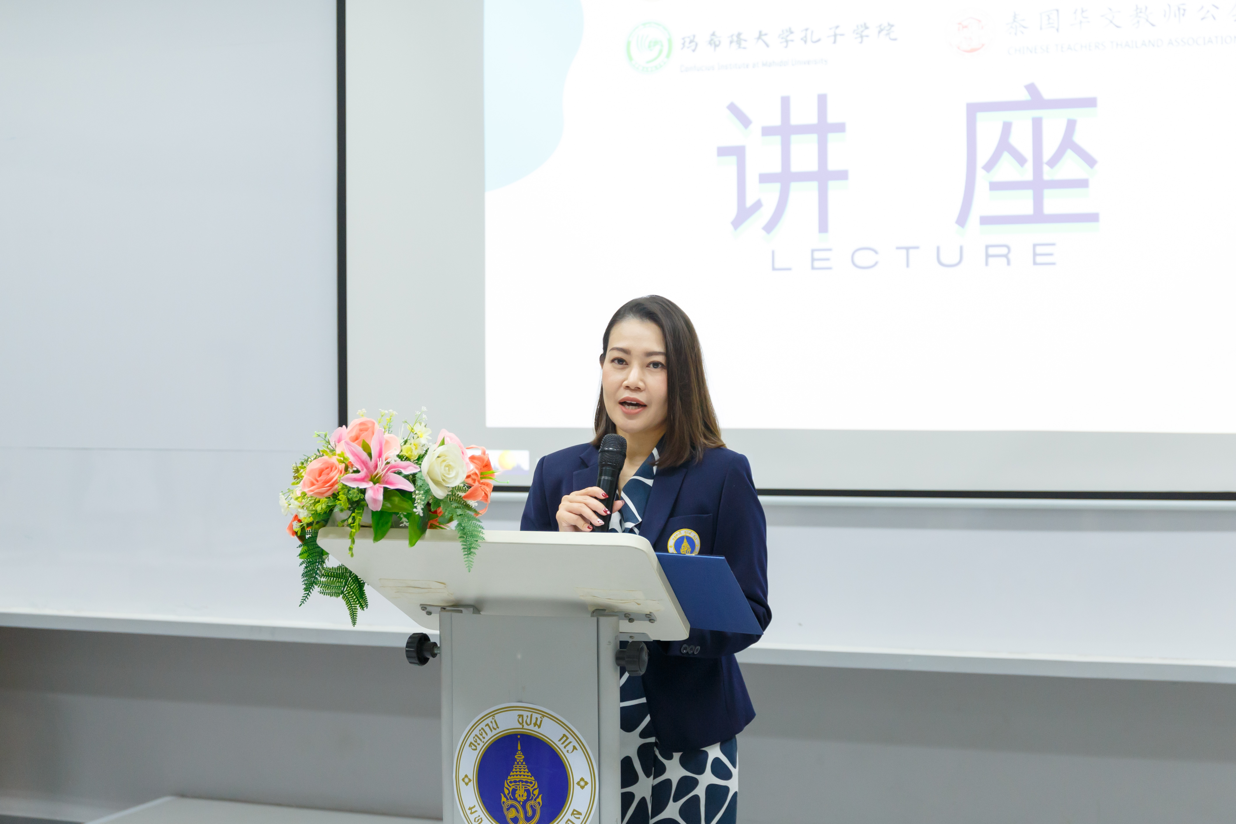 活动伊始,玛希隆大学人文学院副院长发表了热情洋溢的开场辞。副院长首先代表学院向远道而来的吴平教授、张宝林教授和王秋生教授表示热烈的欢迎和衷心的感谢,并高度评价了此次讲座活动对于增进中泰文化交流、推动国际中文教育事业发展的重要意义。