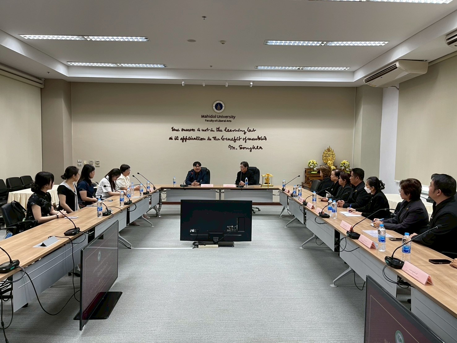 上午十时,合作会议在玛希隆大学人文学院诗维利雅大楼729会议室举行。会议伊始,双方简要介绍了参会人员和各自学院发展概况。公立健华学校作为一所泰国华文学校,已经有逾百年的办学历史。学校现设有从幼儿部至高中部的完整教育体系,并始终将中文教育置于核心地位。多年来,健华已输送大量师生前往中国高校学习深造,其中包括北京语言大学、云南师范大学、哈尔滨师范大学等。值得一提的是,我院泰方院长张曹武也是公立健华学校的校友,代表团中的两位都是张院长曾经的老师。