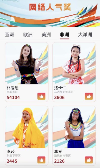 在网络投票环节,李莎得票数超过2400,位列非洲选手前列,收获了广泛关注与喜爱。