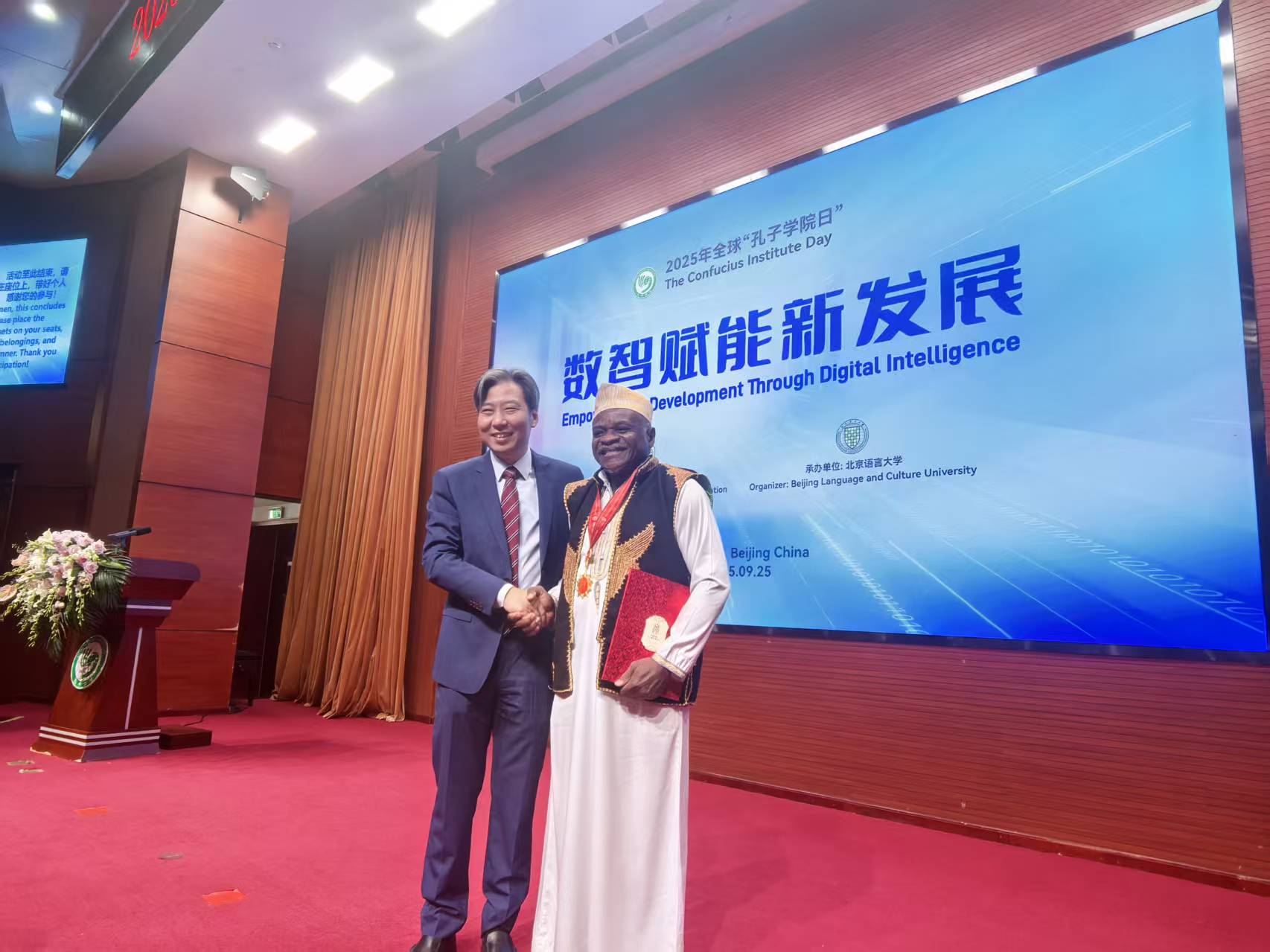 9月25日上午10点,2025年全球“孔子学院日”活动在北京语言大学逸夫报告厅成功举办。本次活动由中国国际中文教育基金会主办、北京语言大学承办,主题为“数智赋能新发展”。部分驻华使节,中国政府部门代表,孔子学院院长、中外方合作机构代表等中外来宾齐聚一堂。