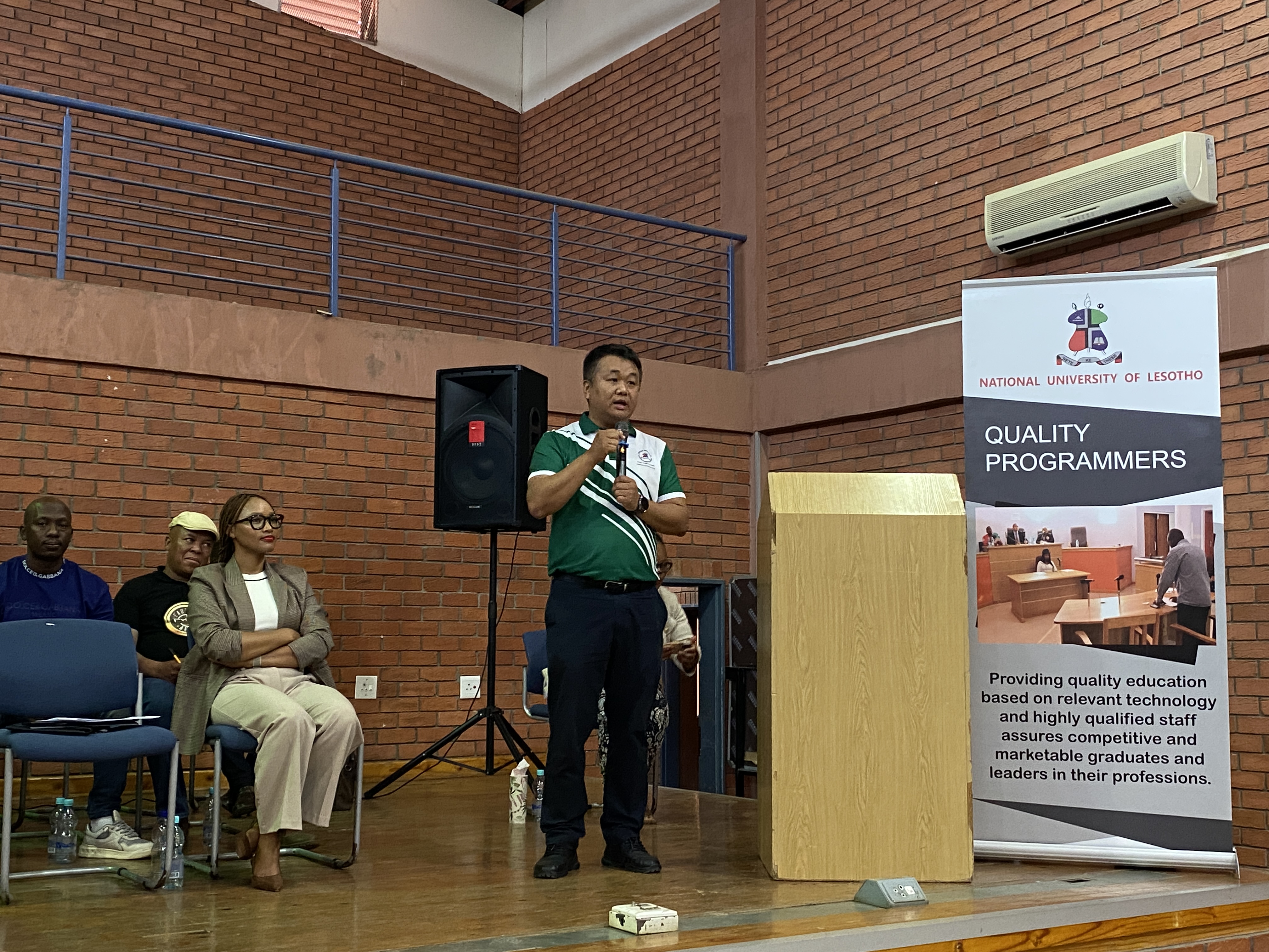 活动现场气氛热烈,农学院师生代表、企业嘉宾及孔子学院中莱方教师共同出席。孔子学院中方院长孟繁兴博士在会上发表讲话,强调语言在职业发展中的重要作用。他指出,语言不仅是沟通的工具,更是连接世界、促进合作的重要桥梁。随着中莱两国在农业、教育等领域的深入合作,掌握中文将为莱索托青年创造更多学习与就业机遇。孟院长表示,孔子学院将继续充分发挥平台作用,提供更多语言培训与文化交流机会,助力学生提升国际竞争力。他还鼓励同学们积极学习中文,了解中国文化,为未来的职业发展积蓄力量。