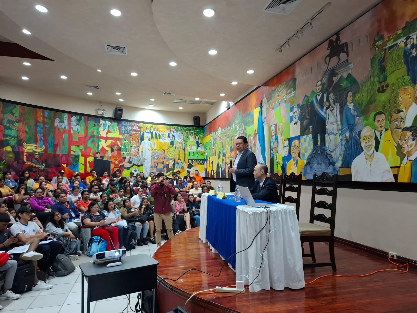 7月7日,“中洪之声”系列讲座的首场活动在弗朗西斯科·莫拉桑国立教育大学报告厅成功举办。讲座由中国驻洪都拉斯大使馆临时代办谭旻星主讲,他围绕“中国式现代化”详细为到场嘉宾讲述了中国式现代化的内涵、发展及其当代价值。首场讲座吸引了近200名洪都拉斯民众参与。