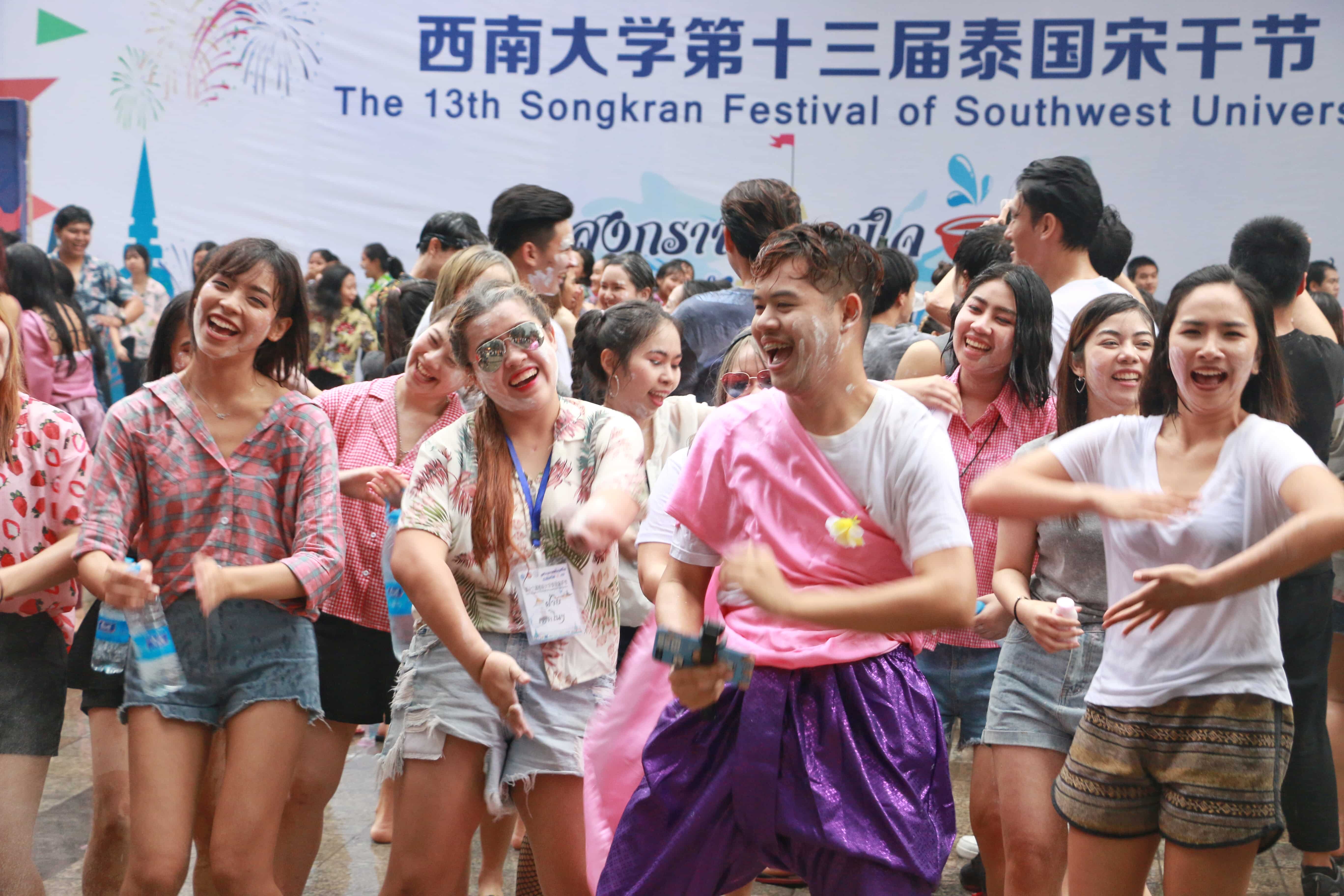Confucius Institute scholarship students spend “Songkran Festival” while studying at Southwest University.