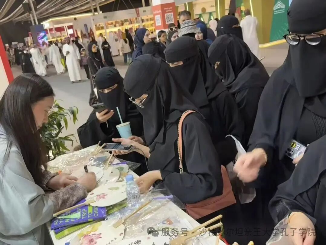 在此过程中,苏尔坦亲王大学孔子学院积极发挥桥梁作用,在资源对接、现场执行与成果转化等方面提供系统支持。书院组织双语志愿者提供导览与解说服务,并设立“阅读中国”互动展区,通过“笔墨生辉”中文姓名书写、“童心启蒙”春节故事手作等活动,吸引众多参观者驻足体验。教师现场讲解汉字文化内涵与春节习俗,在轻松互动中激发当地民众尤其是青少年对中国语言与文化的兴趣。