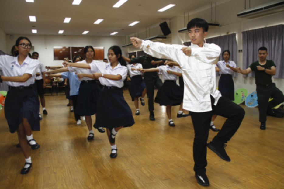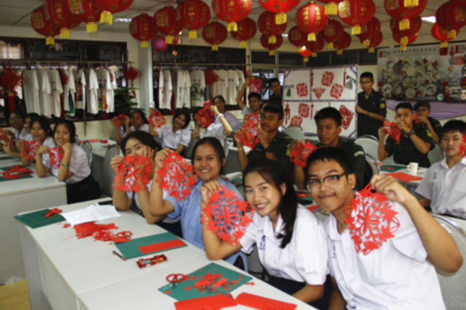 曼松德昭帕亚皇家师范大学孔子学院的“中华风采”文化体验营包含中国文化展示、中国剪纸体验、五禽戏体验等内容。展厅内陈列着凝聚古人智慧的中国传统玩具、华丽优雅的中国民族服饰及独具特色的中国乐器等。参观者可以通过抖空竹、打鼓、转手绢、下五子棋等体验中华文化;也可以着中国传统民族服饰跟随孔院教师学习中国古代礼仪;还可以进行剪纸及五禽戏体验,在折、画、剪中体验剪刀下绽放的艺术之花,在虎鹿熊猿鸟的五戏中体会人与自然和谐统一的中国古老智慧。曼松德昭帕亚皇家师范大学孔子学院多年来一直坚持举办各类文化体验活动,向泰国民众直观地展现中华风采,促进中泰文化的交融和汉语教学的全方位、多层次发展。