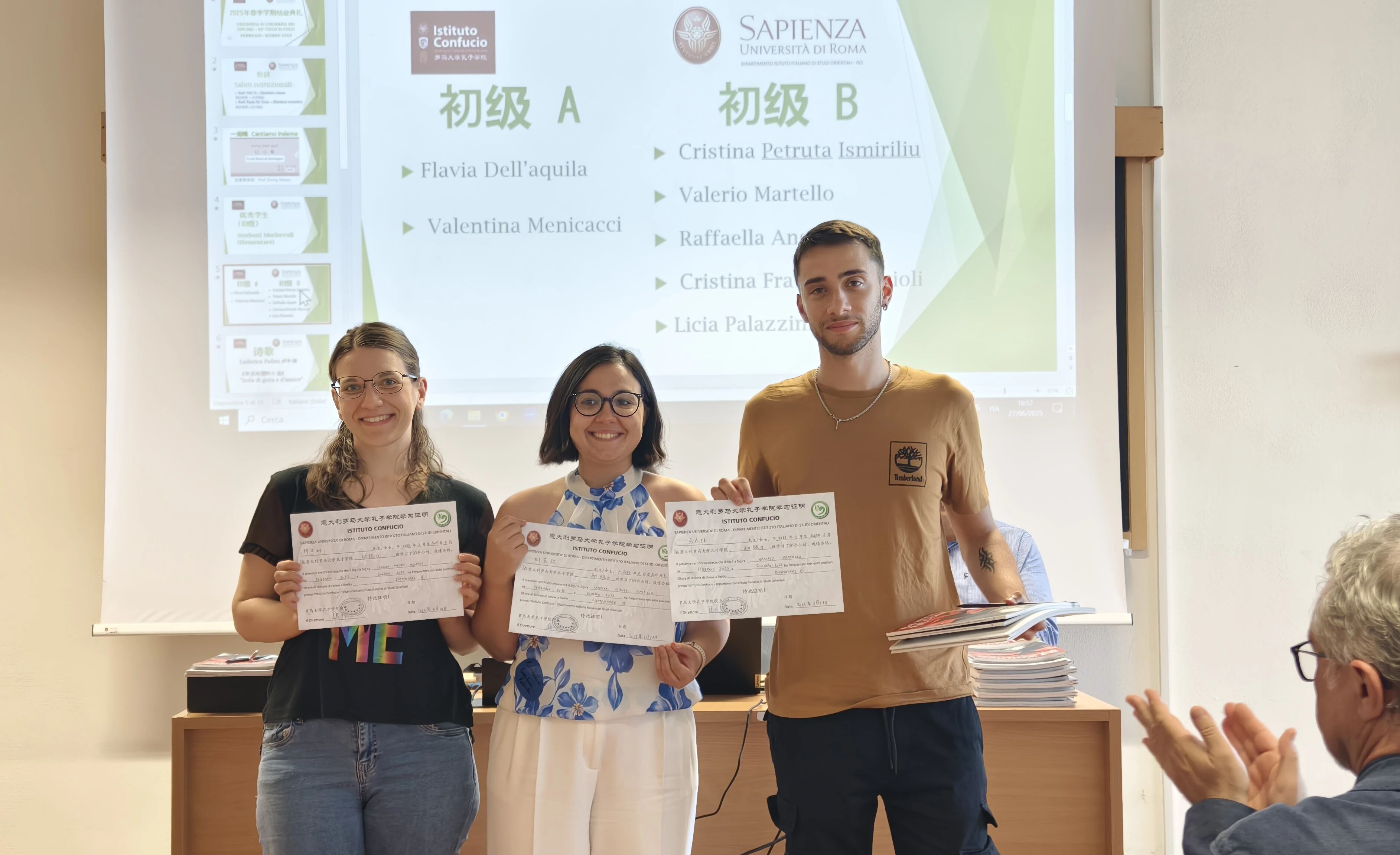 当地时间2025年6月27日,罗马大学孔子学院在马可波罗教学楼举办2025年春季学期结业典礼。包括罗马孔院意方执行院长保罗(Paolo De Troia)在内,约40名孔院师生参加了此次典礼。