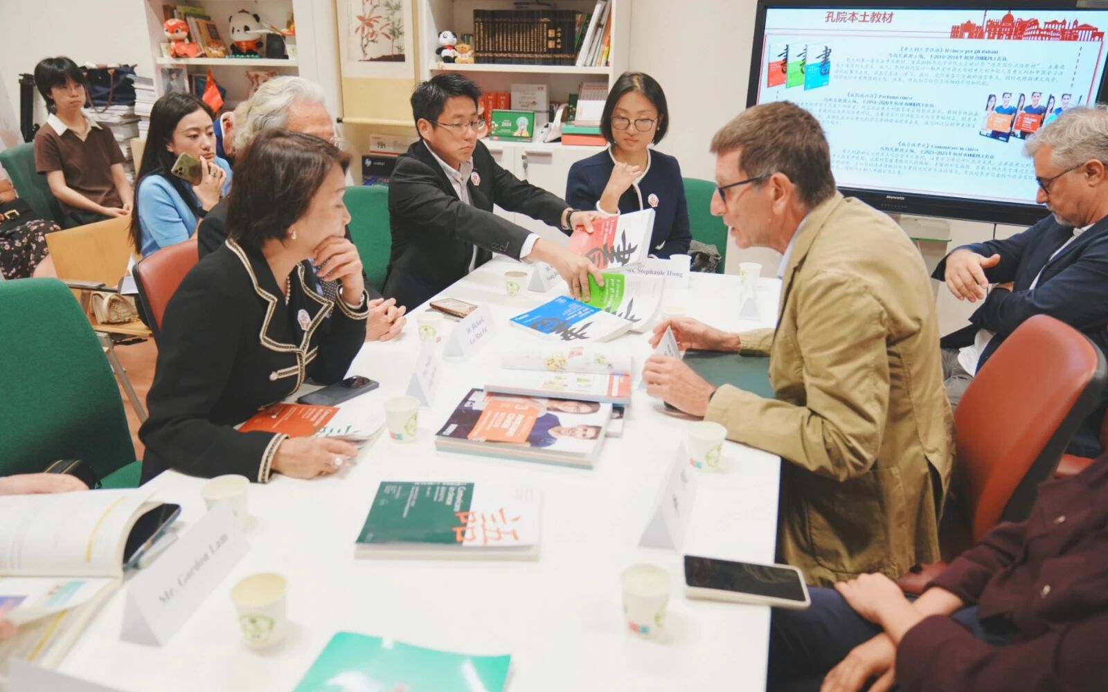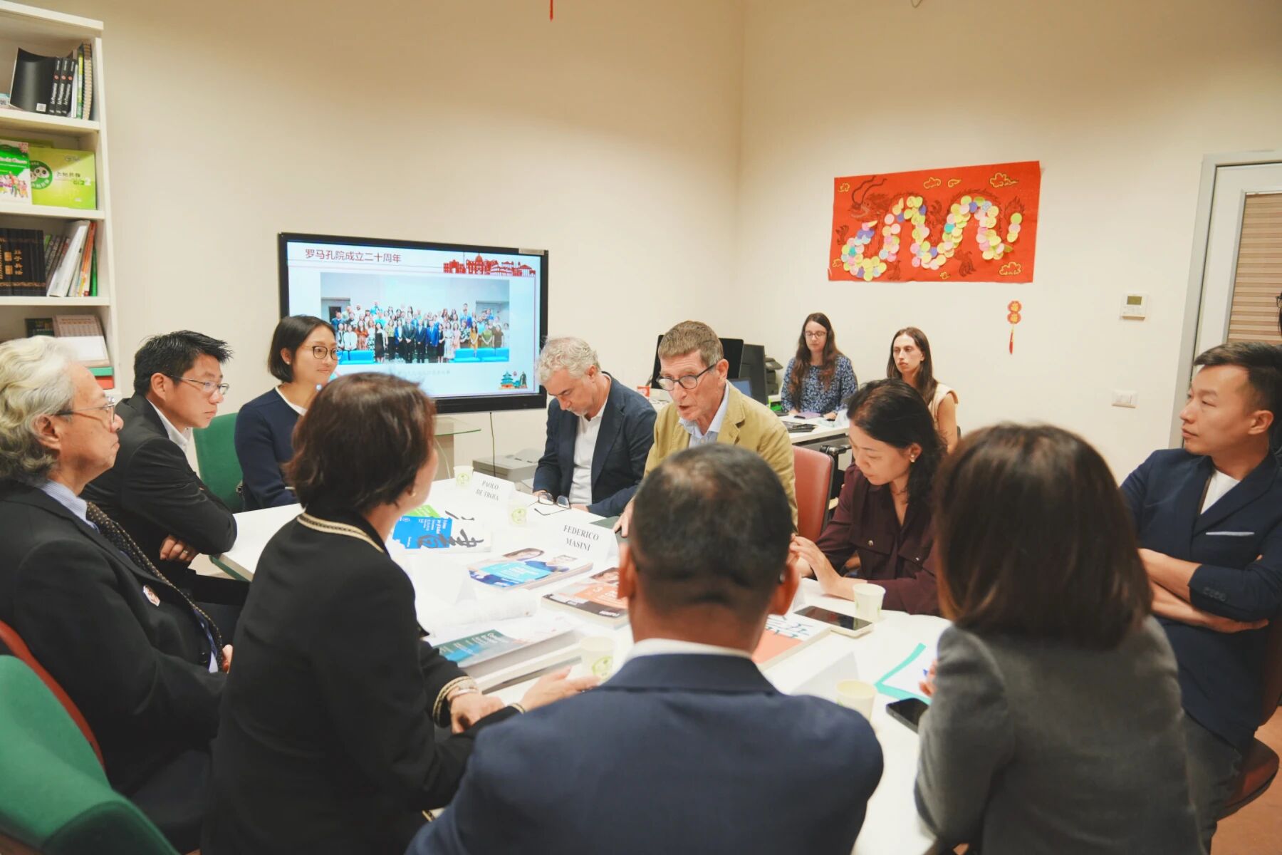 座谈会上,马西尼院长介绍了罗马孔院的发展概况,涵盖本部及下设课堂建设、本土化教材研发、文化交流活动及学术研讨会等,并通过短片回顾了孔院二十年来的办学历程。他表示,孔子学院始终致力于推动中意人文交流与合作。随后,双方就孔子学院的运营模式与未来发展前景进行了深入交流。协会方面表示,愿与罗马孔院建立合作关系,共同推动汉语教学和文化传播。