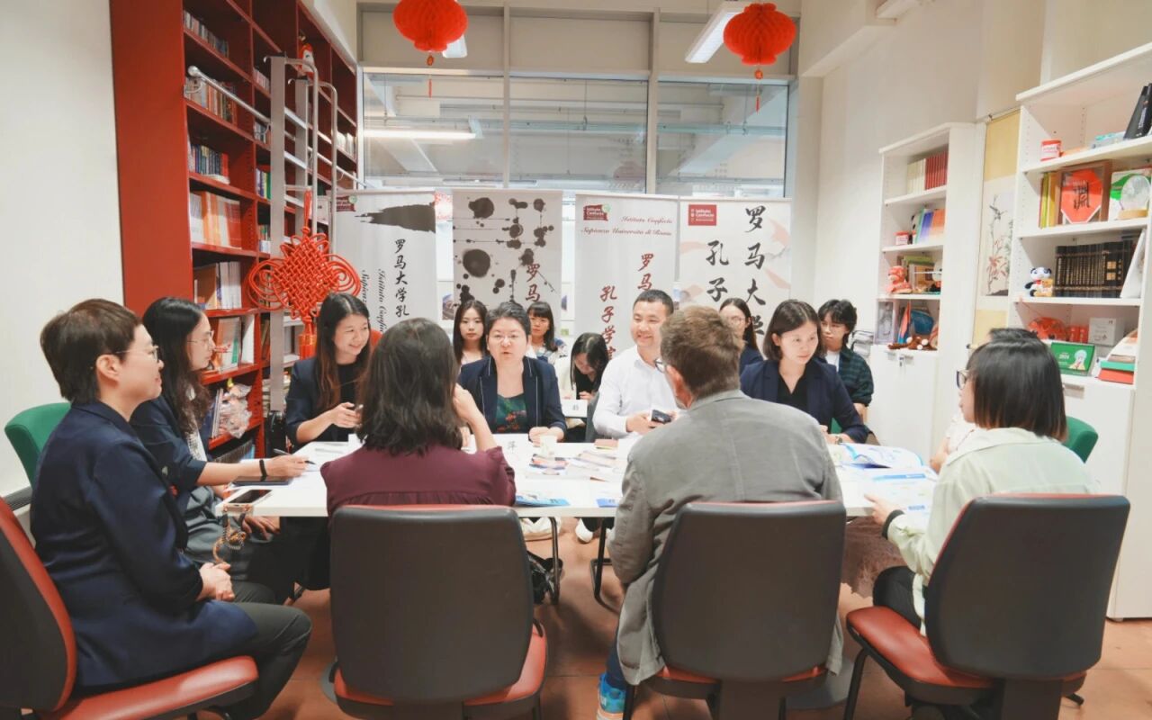 当地时间9月25日,教育部教育技术与资源发展中心(以下简称“教育部资源中心”)代表团访问罗马大学孔子学院。代表团由教育部资源中心主任李萍率队,成员包括社长蒋宇、处长张雪、副处长陈群、副主任雍文静。罗马大学孔子学院意方院长马西尼(Federico Masini)、孔院办公室秘书朴敏佳(Michela Pranzo)、实习生孟娜西(Claudia Magnanensi),部分中文教师参加了本次座谈交流。