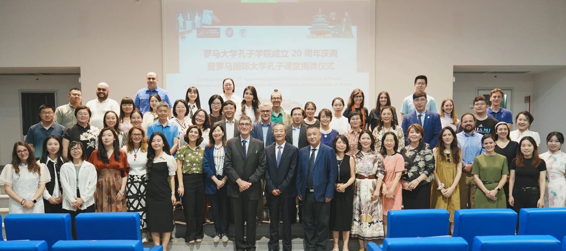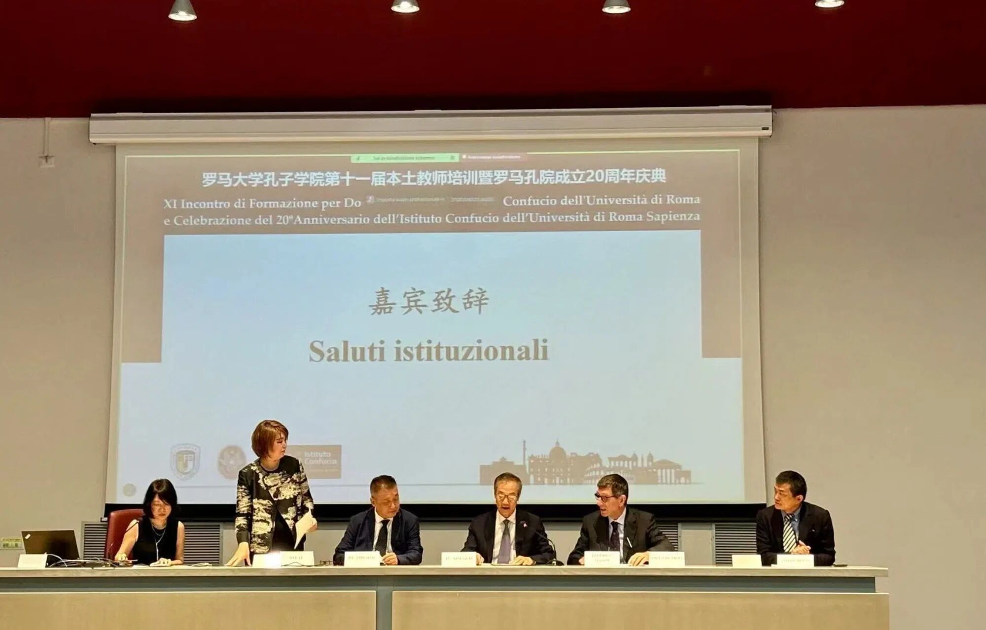 当地时间6月12日上午,罗马大学孔子学院成立二十周年庆典在罗马大学现代外国语言与文学图书馆Aula Magna隆重举行。
