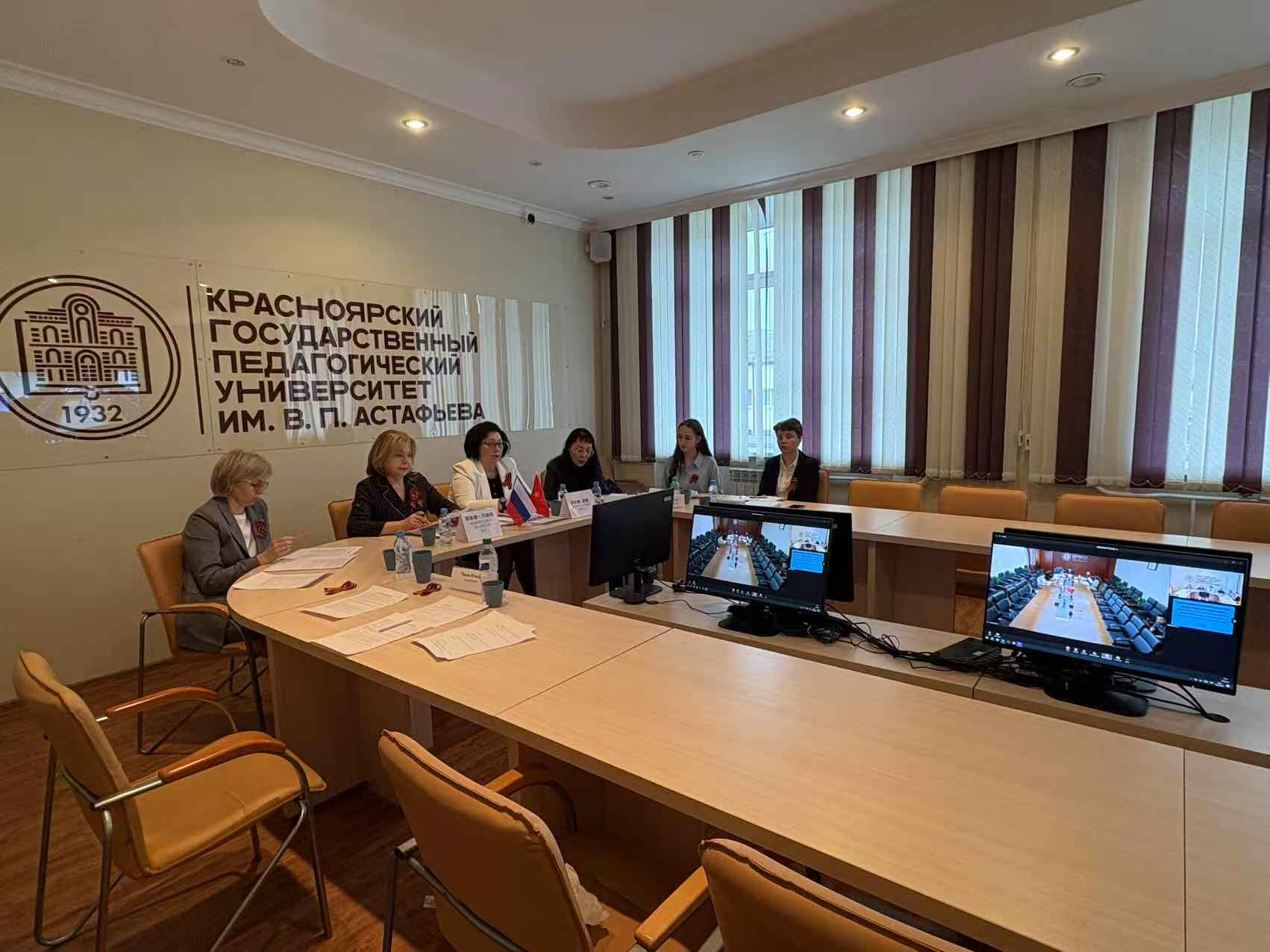2025年5月6日,克拉斯诺亚尔斯克阿斯塔菲耶夫国立师范大学孔子学院第三届理事会第一次会议在线上隆重召开。理事会逐项审议通过了理事会成员变更情况、孔院2024年度工作报告、2025年度发展规划以及2024年度经费决算和2025年度经费预算报告。会议全面回顾了过去一年孔子学院在中文教学、文化交流等方面取得的成绩,明确了新一年的工作目标、任务和发展方向。内蒙古师范大学校长张军 、副校长贾美林,克拉斯诺亚尔斯克阿斯塔菲耶夫国立师范大学校长霍丽娜.М.В.、副校长伊丽伊娜.Н.Ф.,孔院中方院长姚雅锐、俄方院长西帕切娃,以及两校国际合作处负责人等参与。