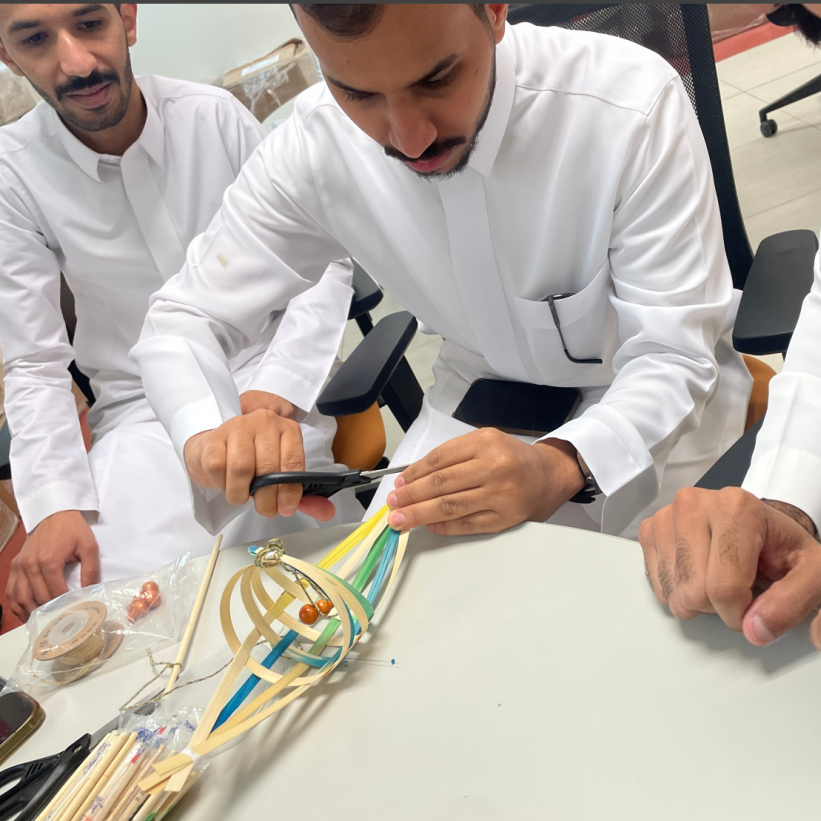 漆扇制作工作坊成为当天最受欢迎的项目之一。在创作中,中国红沙特绿备受青睐,学生们将阿拉伯传统色彩与中国水墨元素相结合,制作出独具特色的漆扇作品。