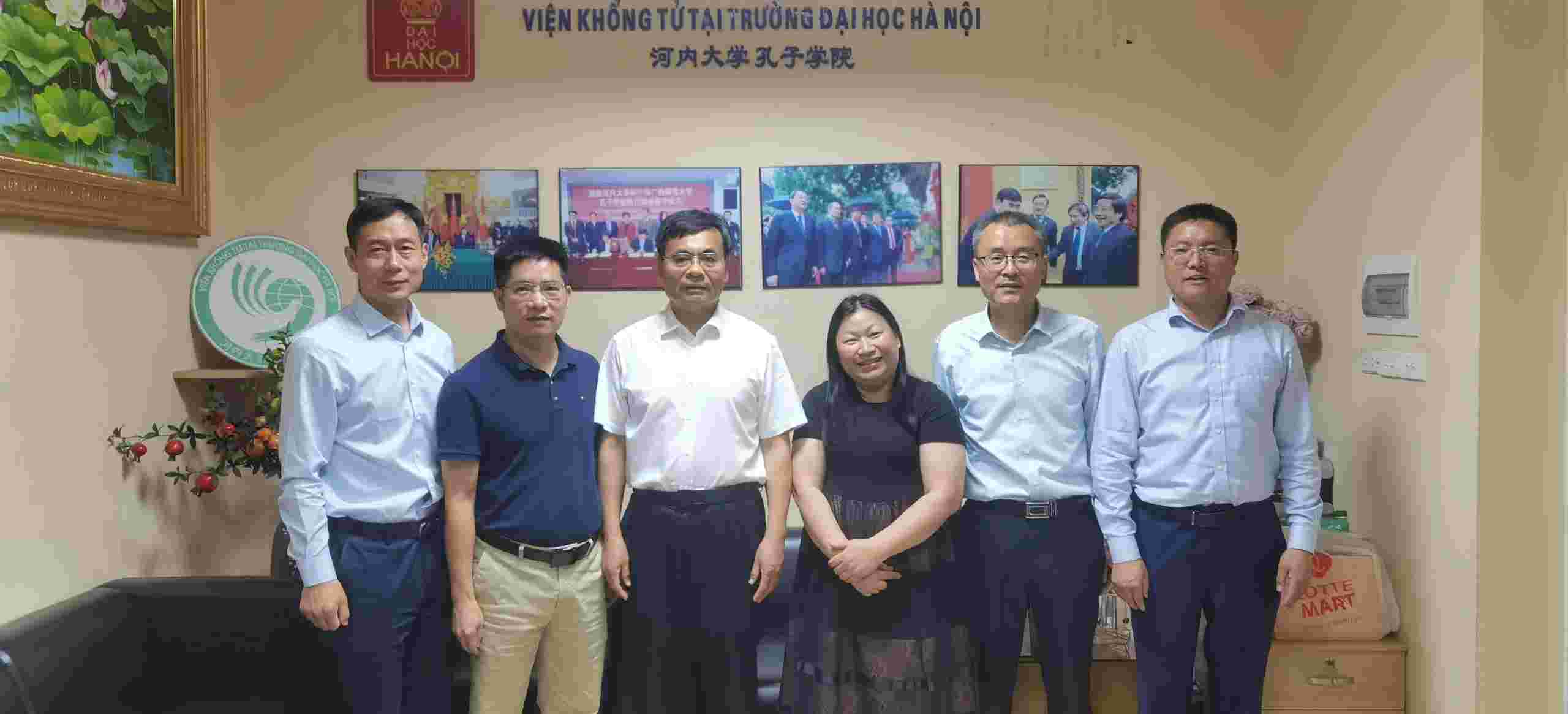 5月11日,山东理工大学代表团一行访问河内大学孔子学院,就孔子学院建设、国际中文教育及中越文化交流等问题进行探讨。代表团由山东理工大学党委书记胡兴禹、党委(校长)办公室主任魏法汇、材料科学与工程学院院长杜庆洋、纺织服装学院院长姜兆辉等组成。河大孔院越方院长杜青云博士、中方院长覃永华博士及全体中文教师接待了代表团一行。