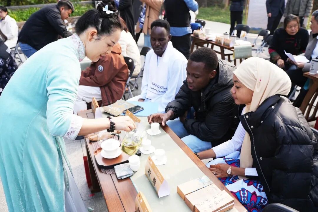 杜雅和毛比还深度参与了以“琴茶花香”为主题的“松风雅集”活动,在非遗传承人的引领下,沉浸于品香、烹茶、插花、赏乐的东方美学之中,感受中国优秀传统文化的雅致与厚重。