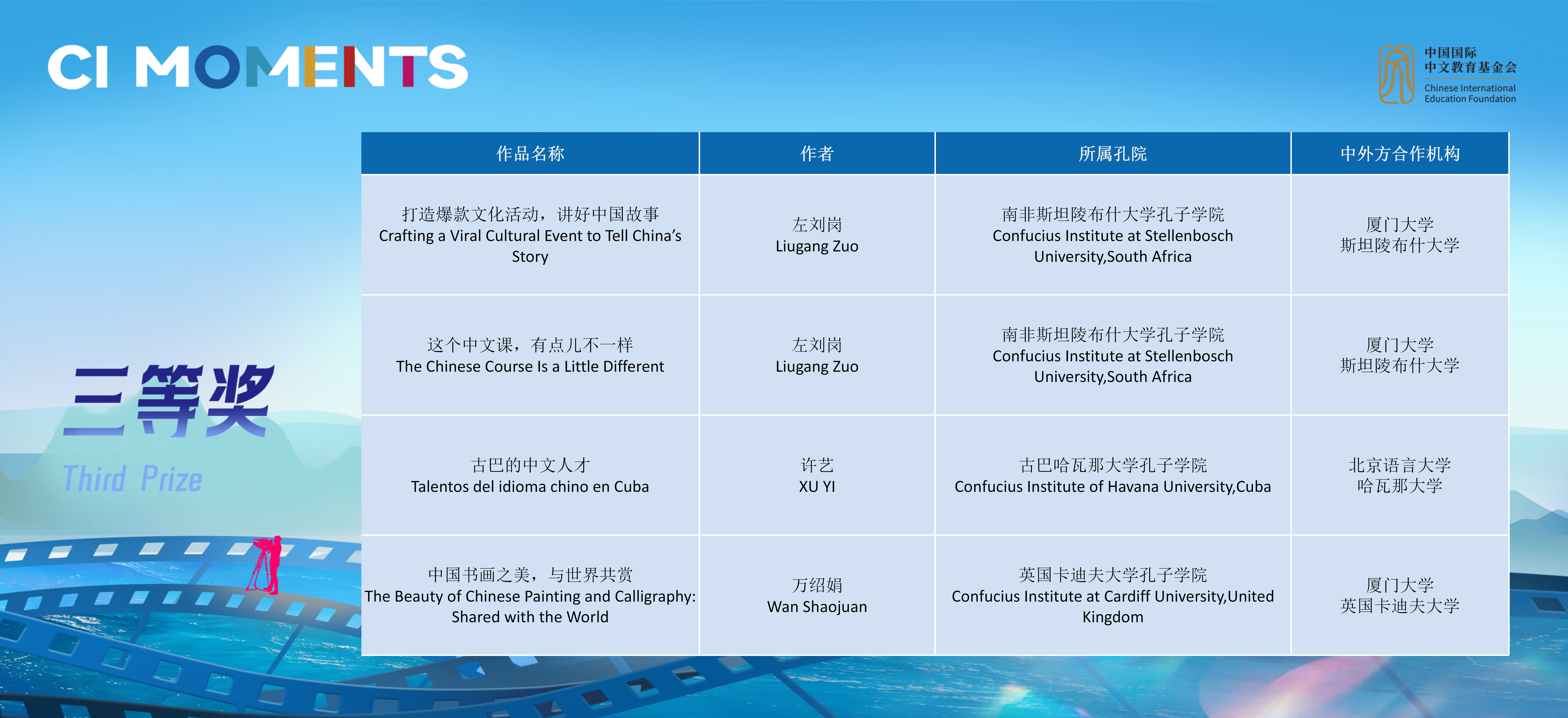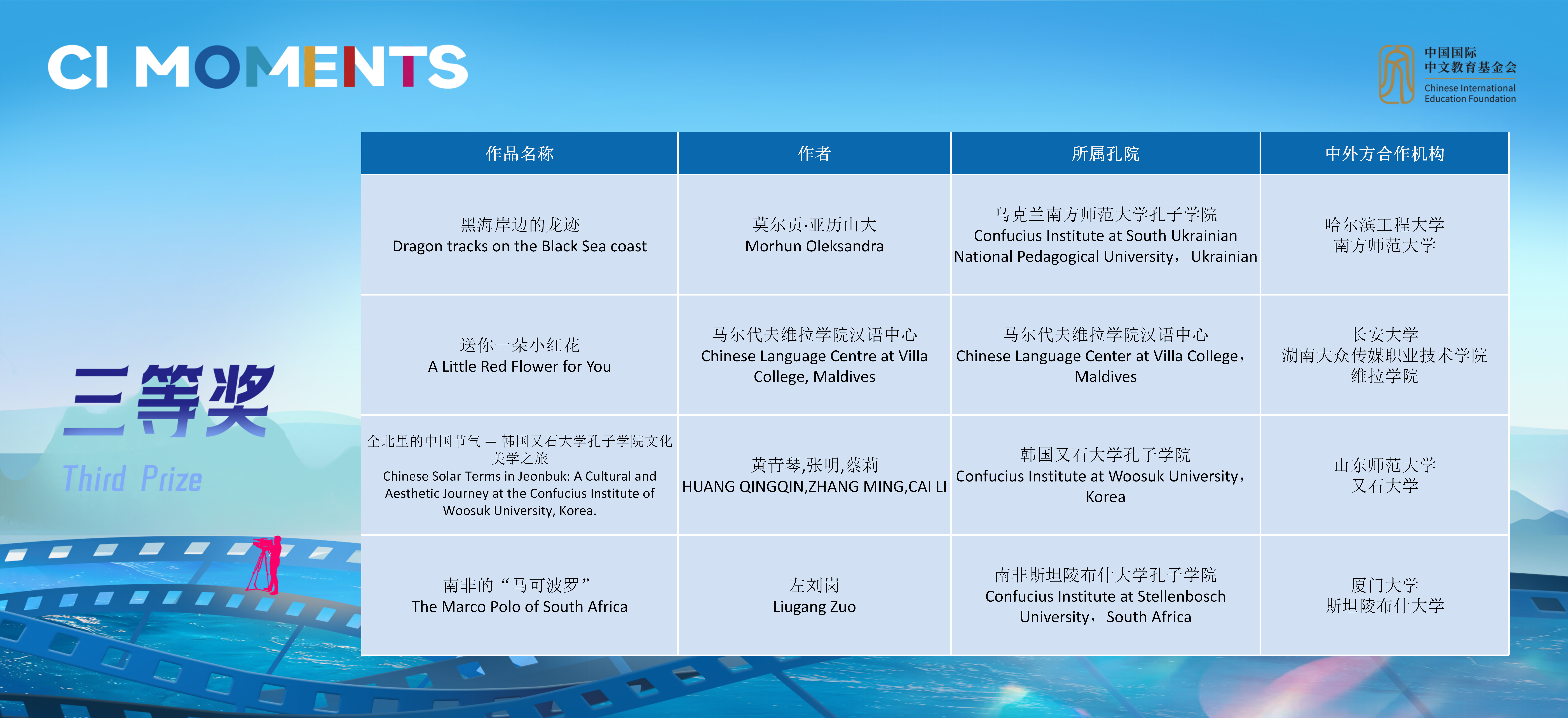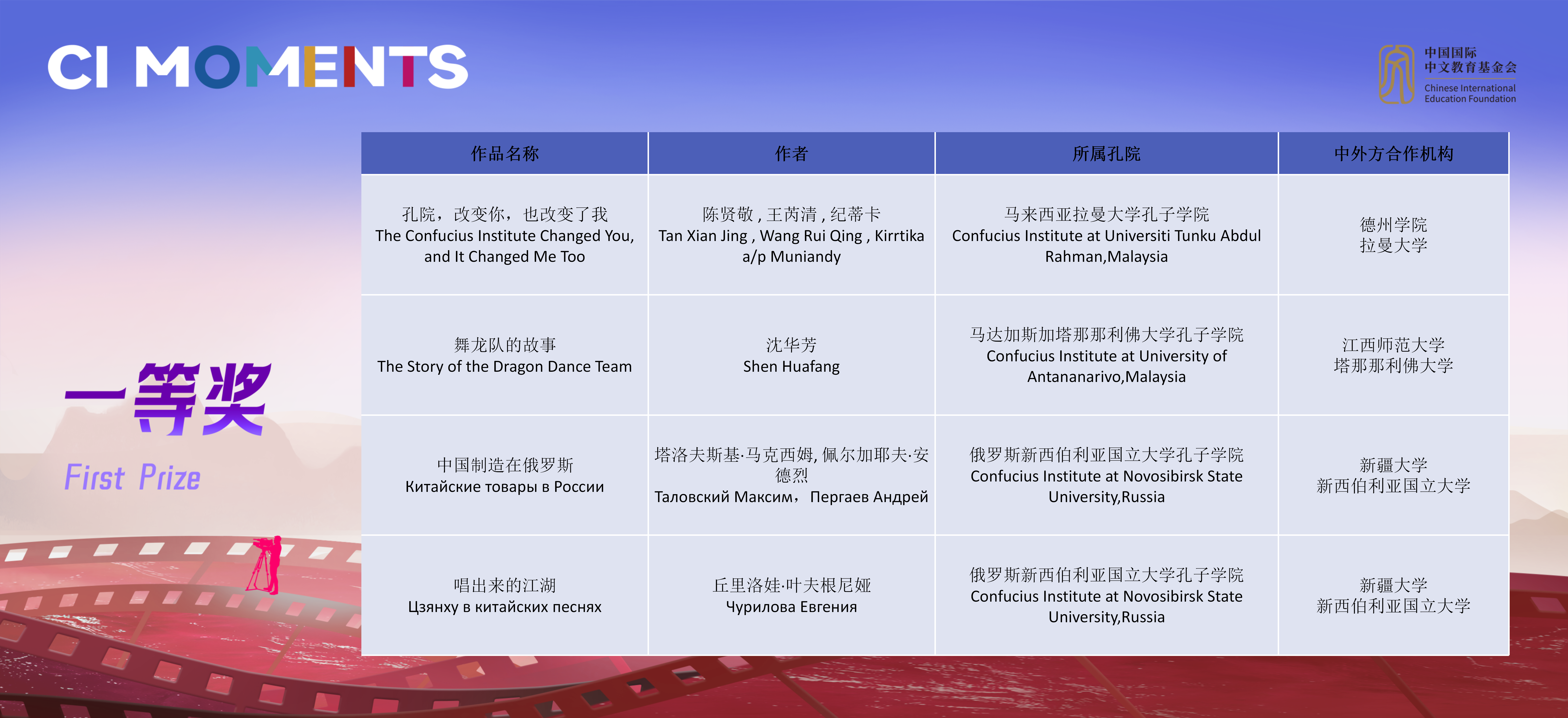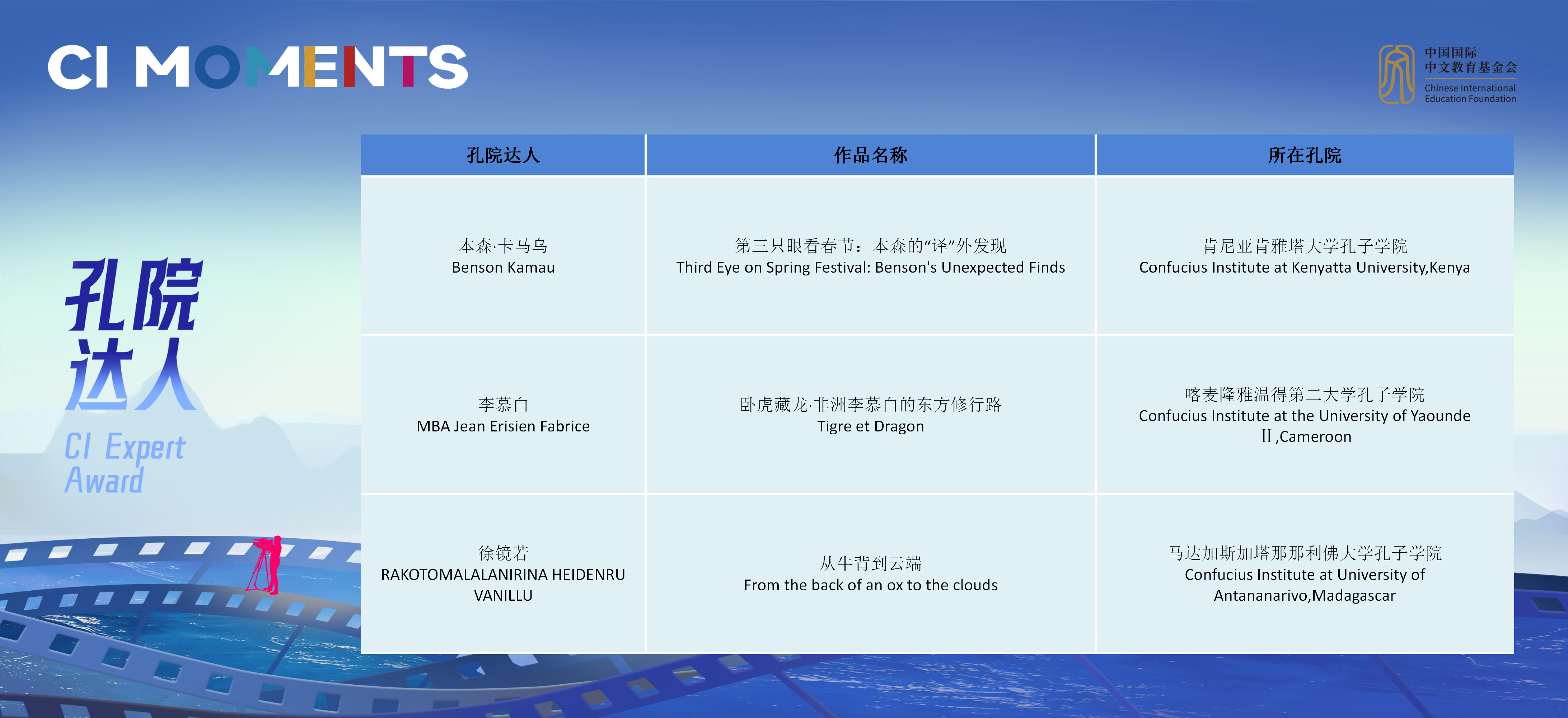 Over the past five years, it is the sincere creations and creative expressions of CIers and Chinese language enthusiasts worldwide that have made the "CI Moments" journey of pursuing dreams possible. Thank all participants for their support to the "CI Moments" event! Congratulations to all creators who have achieved outstanding results in this event.