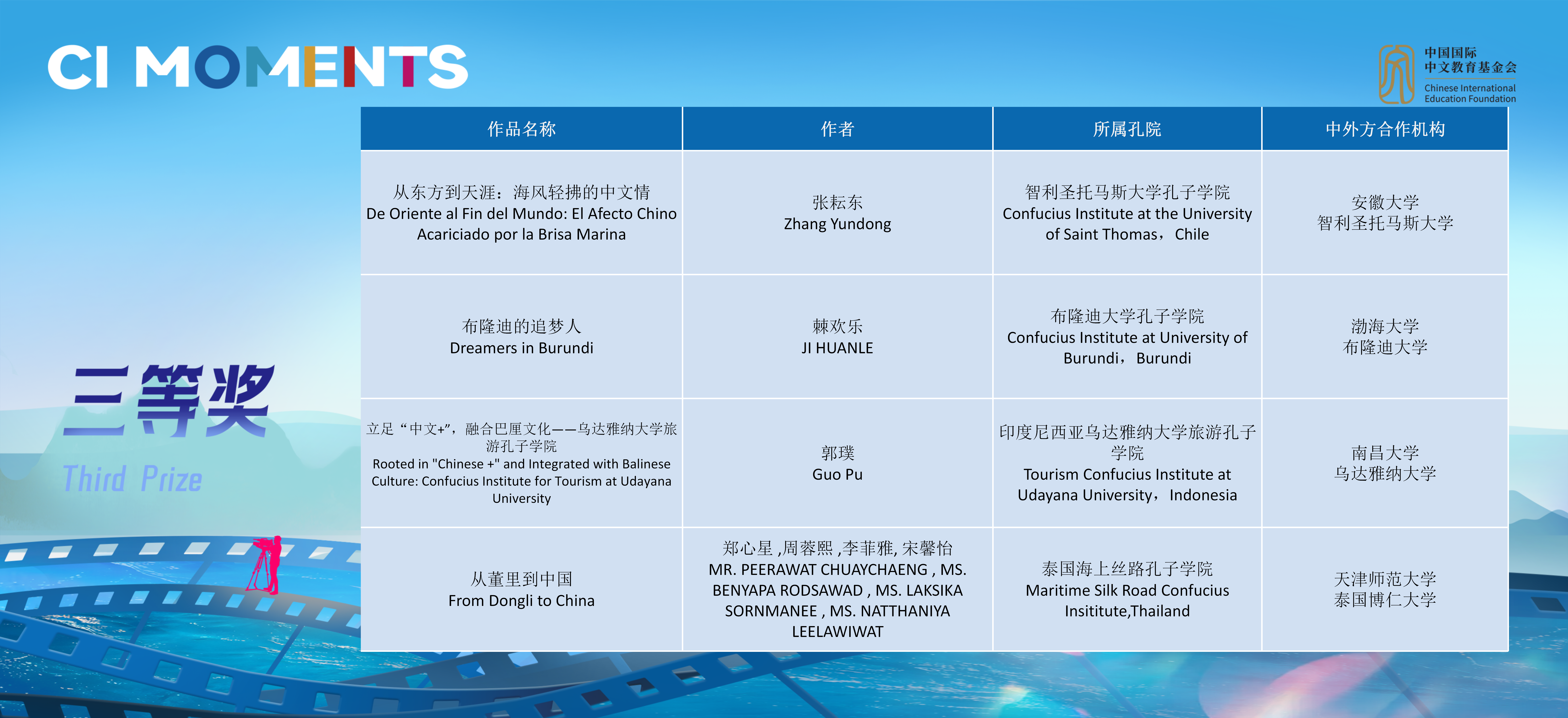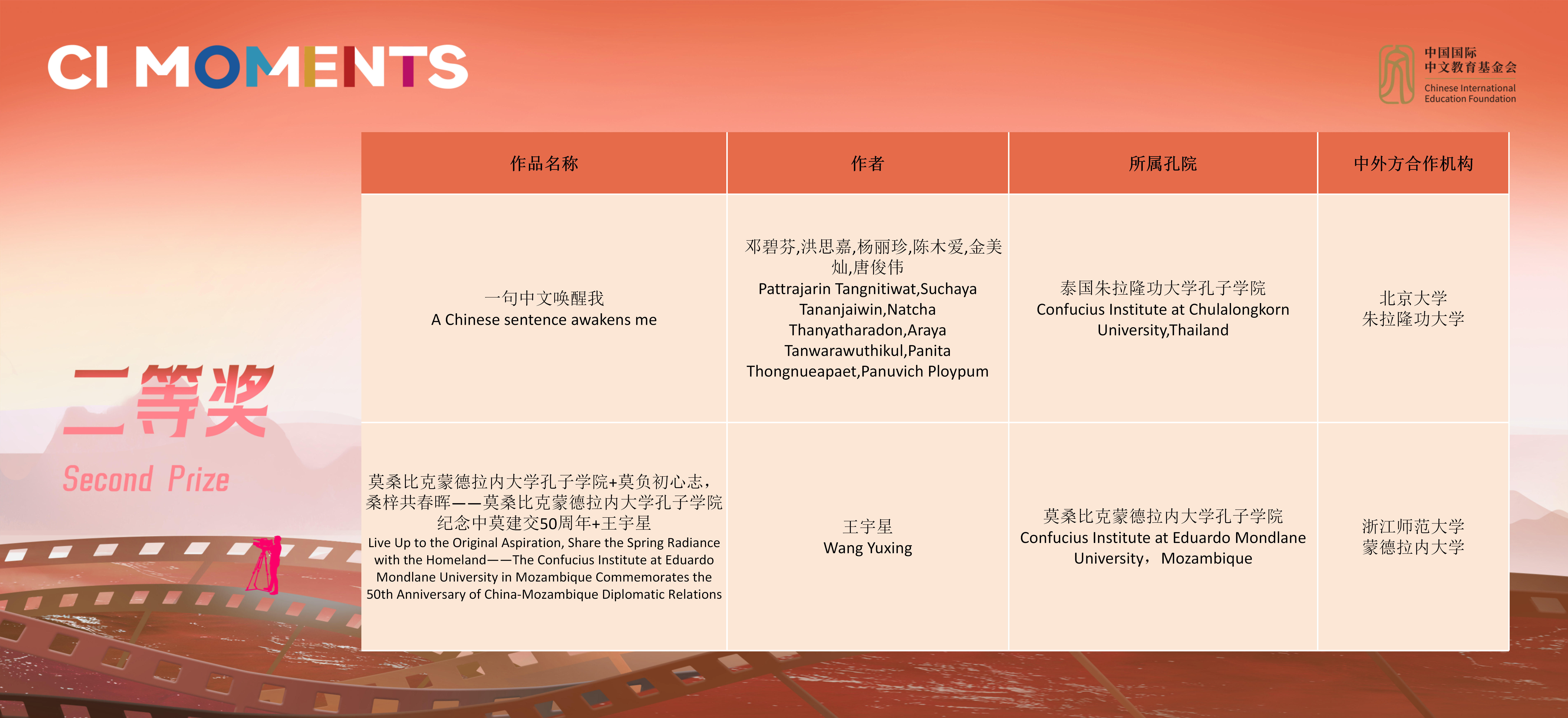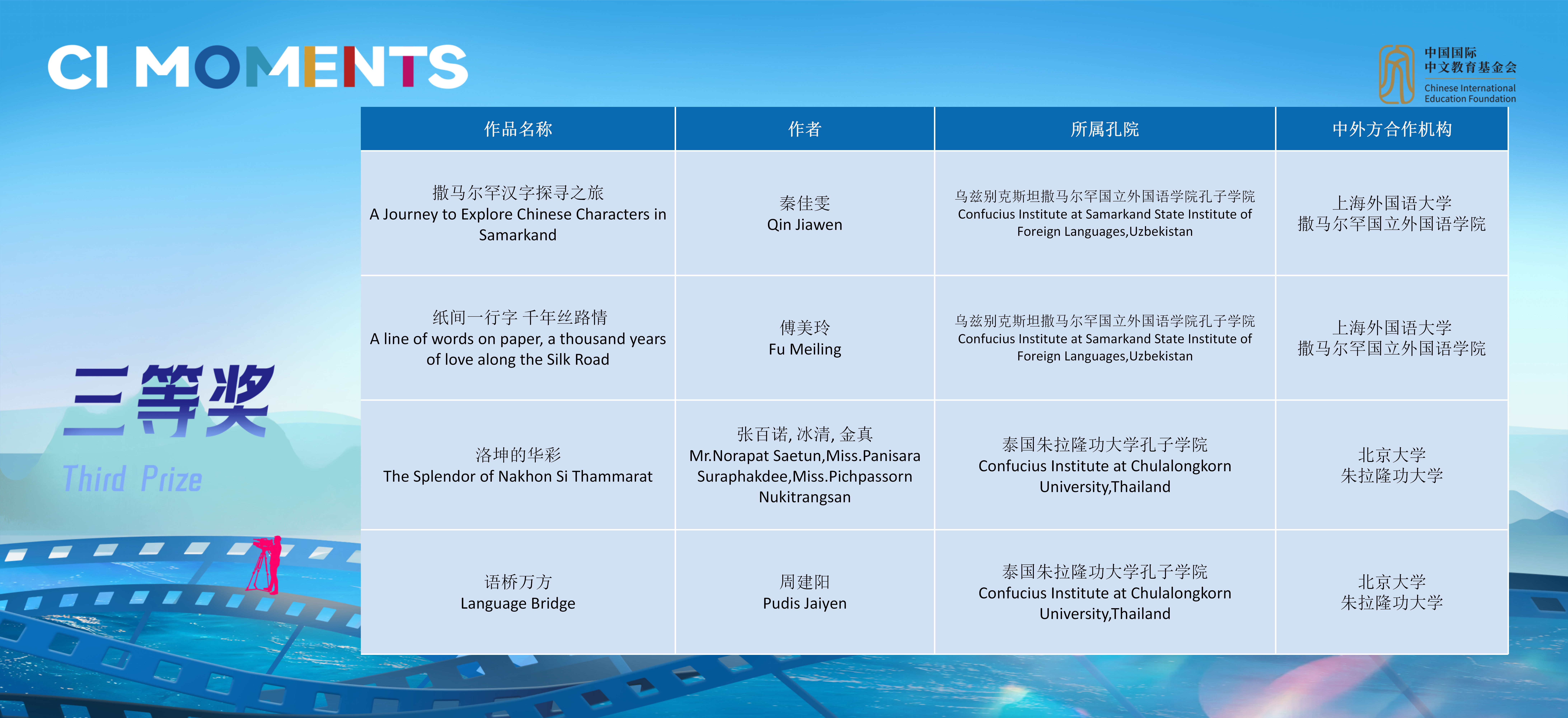 Over the past five years, it is the sincere creations and creative expressions of CIers and Chinese language enthusiasts worldwide that have made the "CI Moments" journey of pursuing dreams possible. Thank all participants for their support to the "CI Moments" event! Congratulations to all creators who have achieved outstanding results in this event.