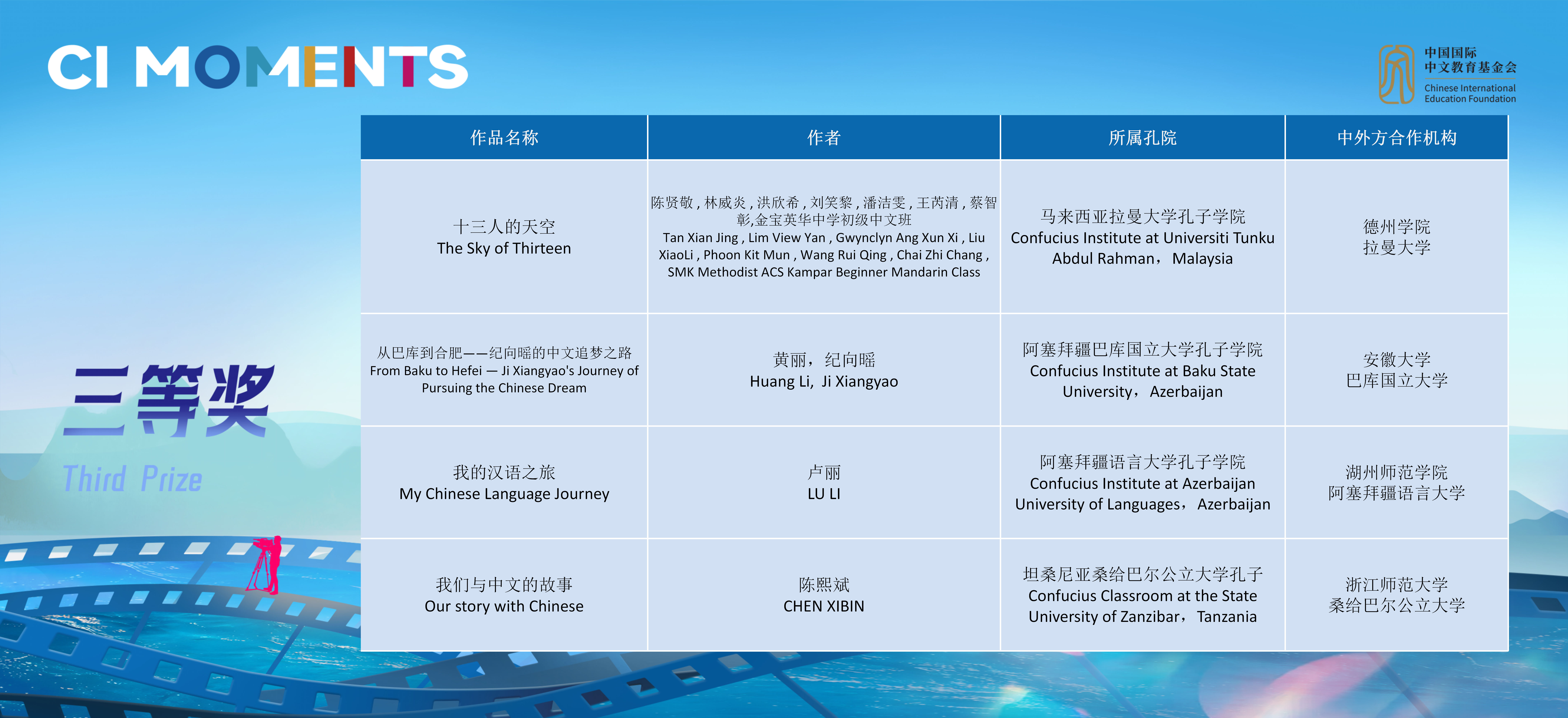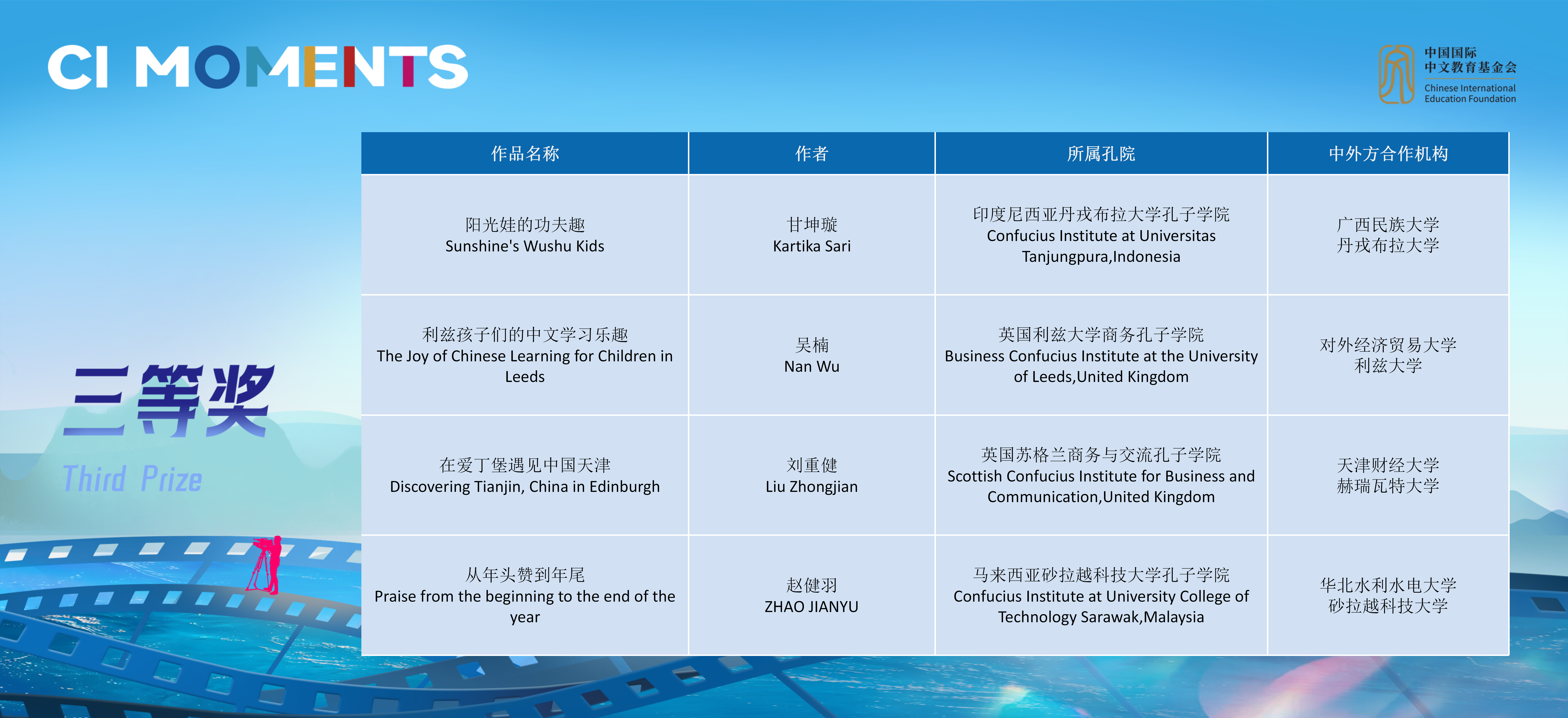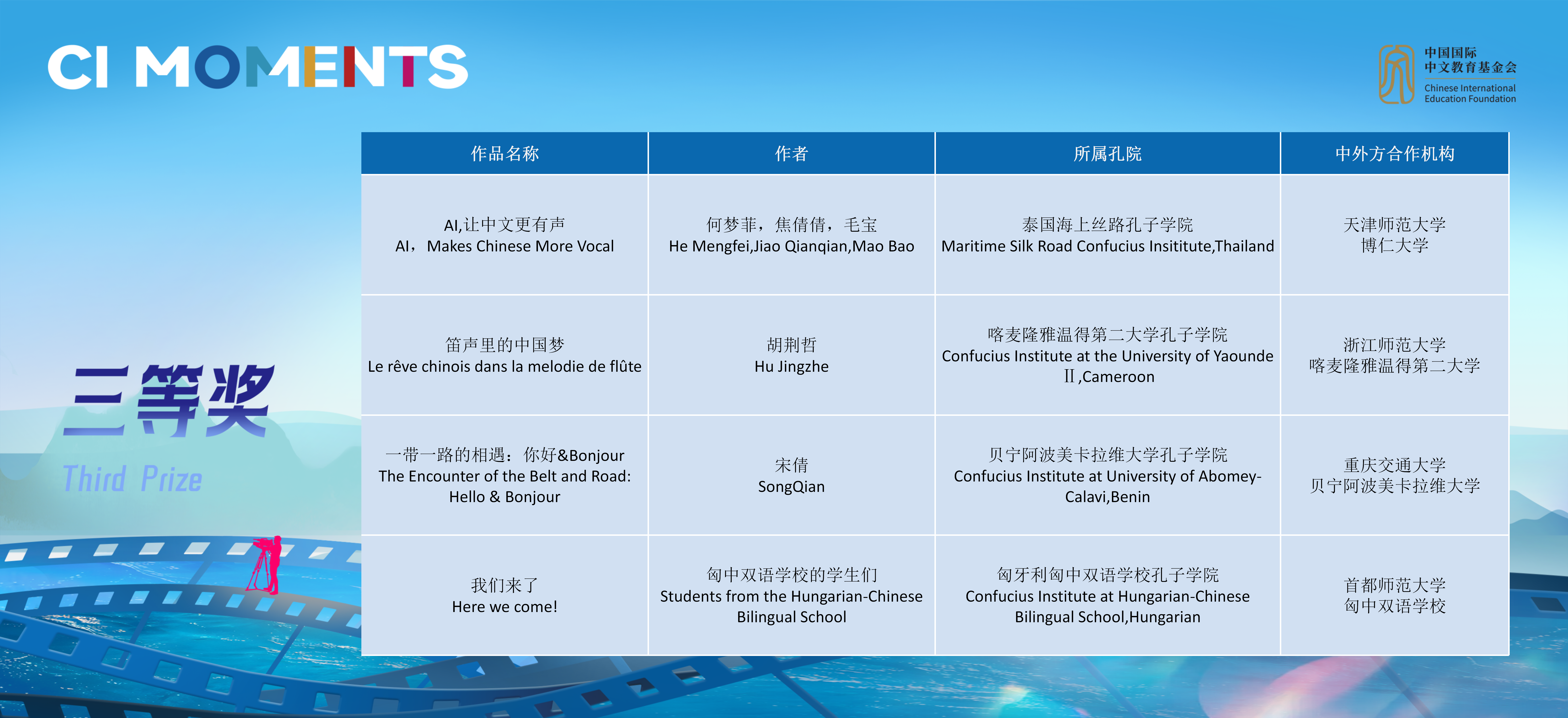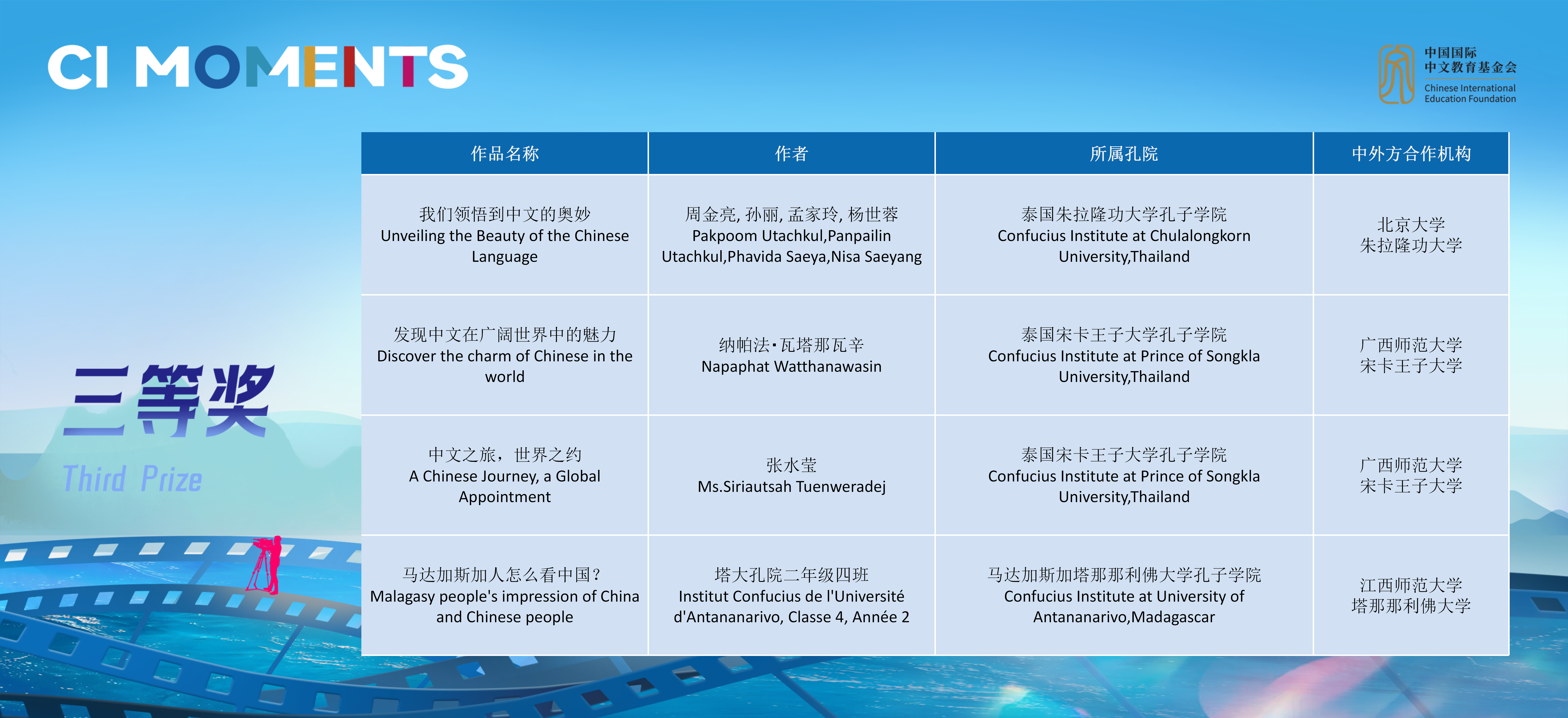 Over the past five years, it is the sincere creations and creative expressions of CIers and Chinese language enthusiasts worldwide that have made the "CI Moments" journey of pursuing dreams possible. Thank all participants for their support to the "CI Moments" event! Congratulations to all creators who have achieved outstanding results in this event.