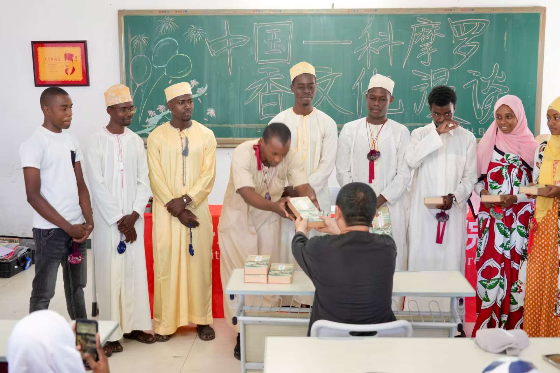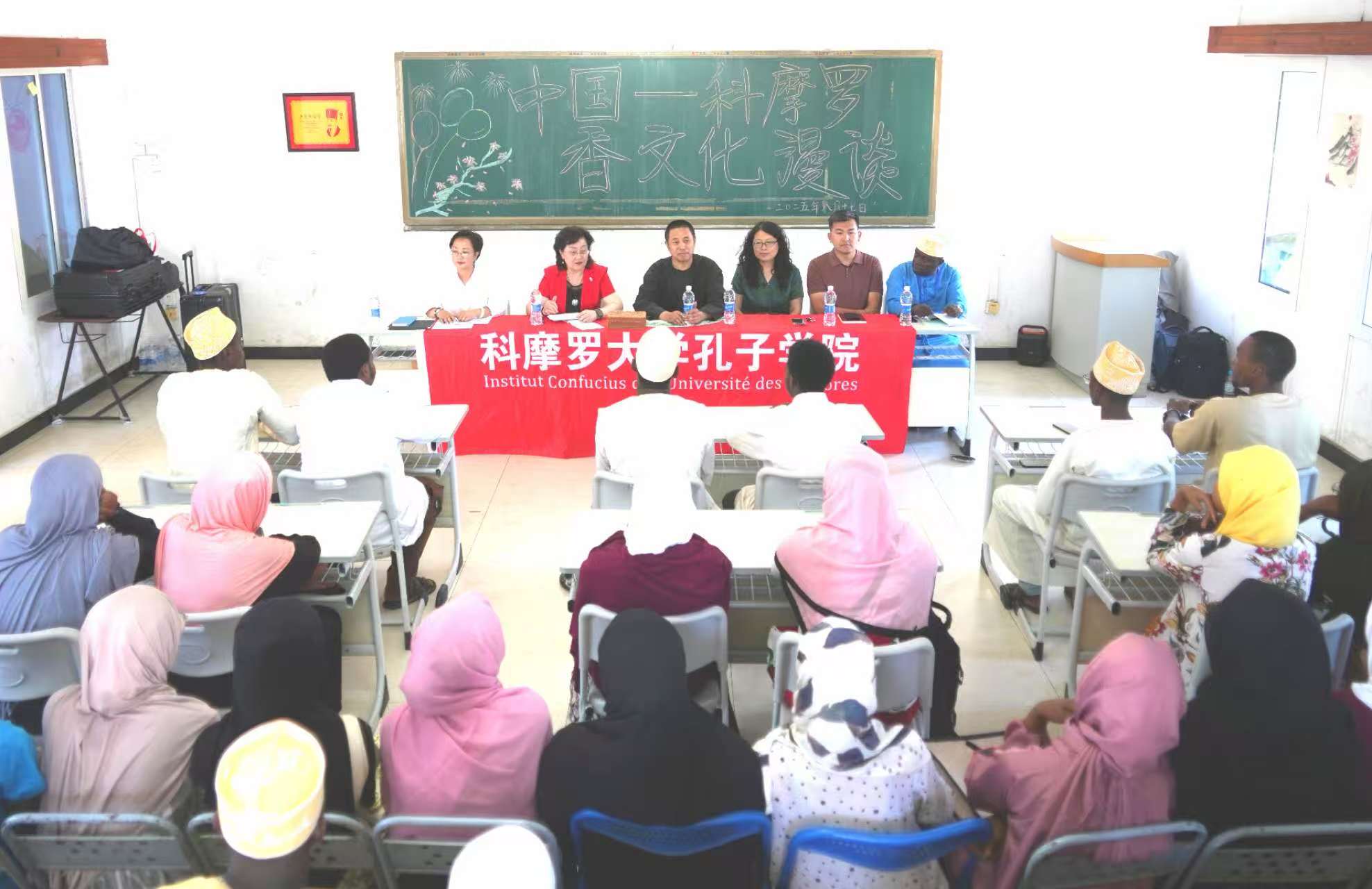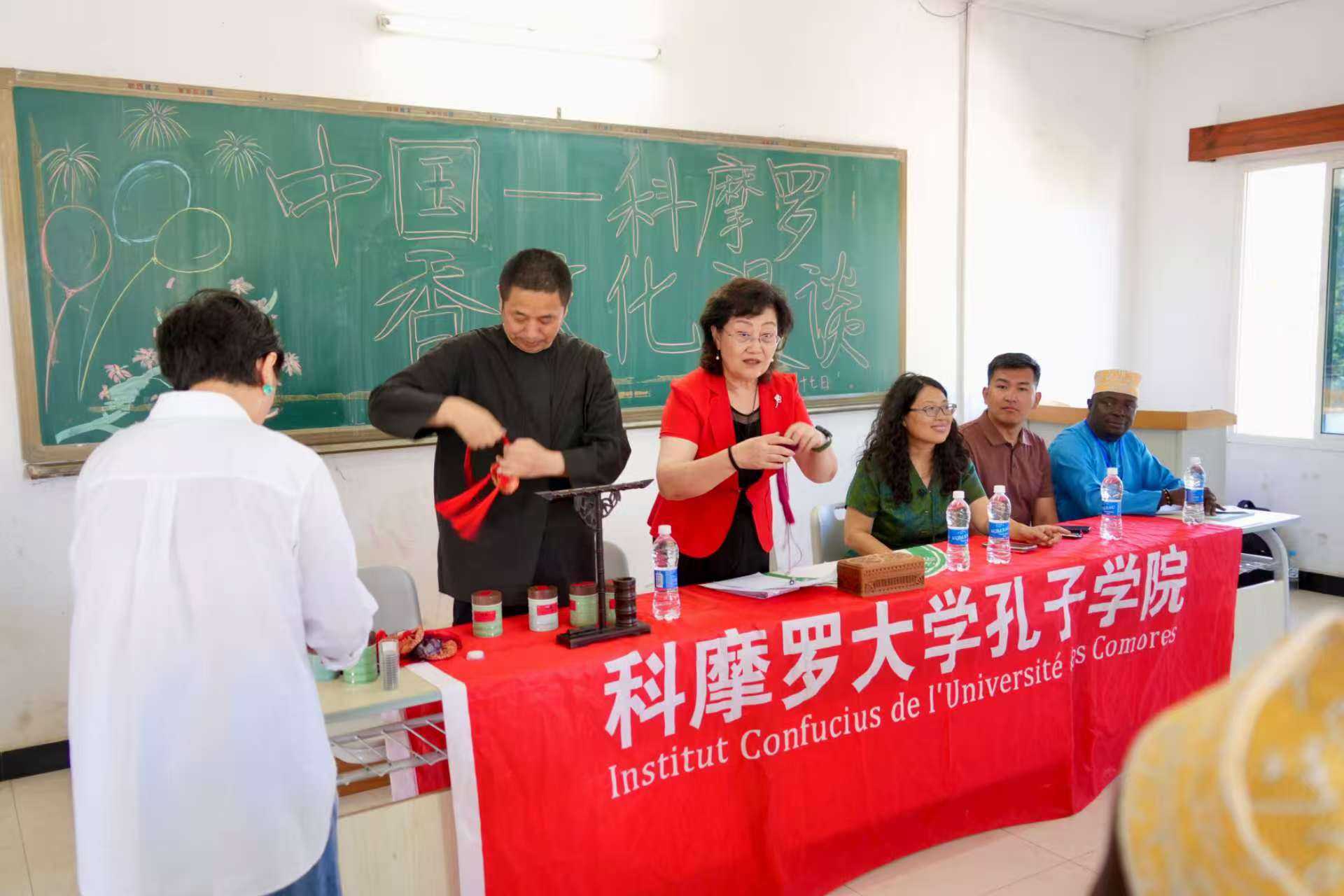 2025年8月17日上午,在科摩罗大学孔子学院驻地CUFOP,中国民俗学会中国香文化研究中心一行4人与科摩罗大学孔子学院50余名师生,共同见证了北京非遗“和香制作技艺”工作坊在孔子学院揭牌。