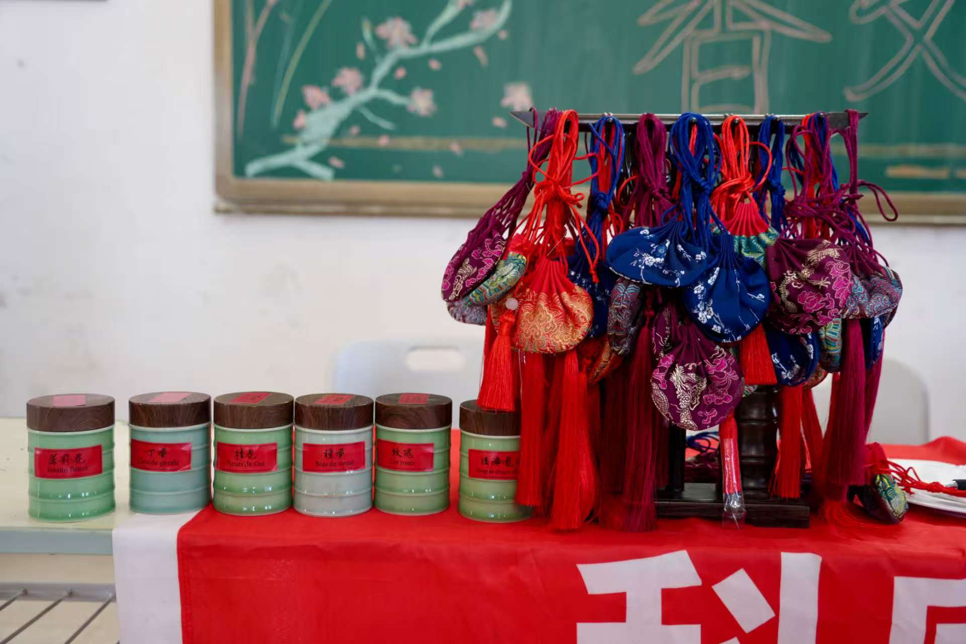 接下来,孙主任现场教学员制作包含丁香、沉香、桂花、茉莉等多种香料的中国香囊,让他们了解了中国香囊丰富而有趣的历史内涵。