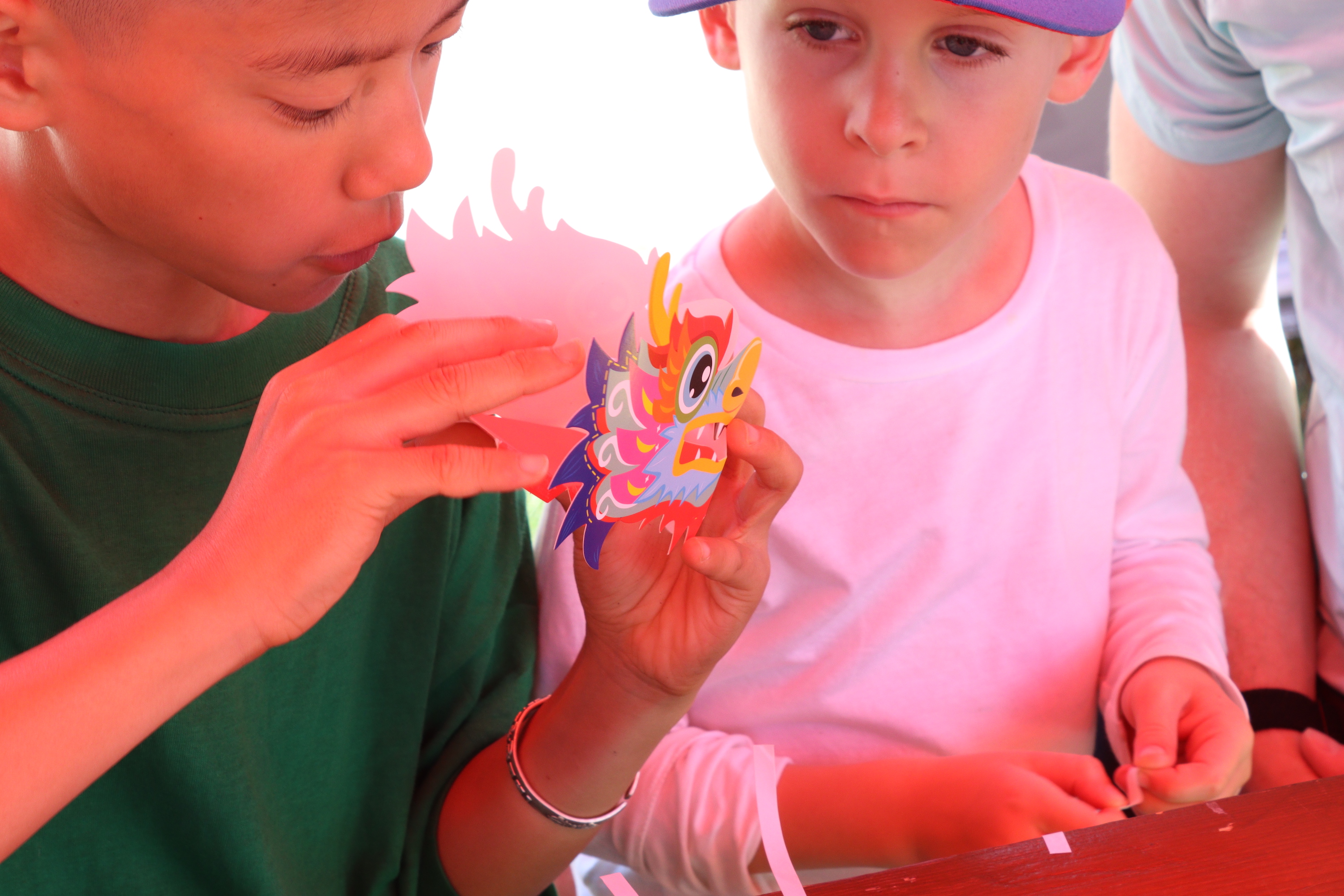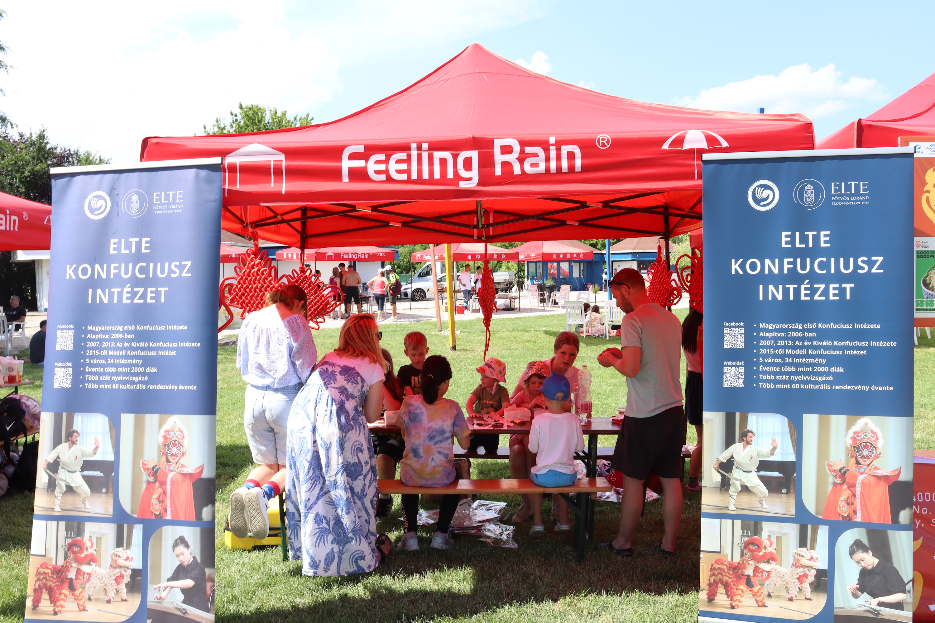 文化节活动现场设有主舞台区、多个中国文化展台及乐山美食品尝展台。来自罗兰大学的博士生祹络岚(Torma Laura)担任舞台节目主持人。主舞台区表演了舞狮、太极、旗袍秀等精彩节目,其中罗兰大学孔院舞狮队的表演吸引了全场观众的目光,深受当地民众喜爱。在文化展台区,罗兰孔院设置了书法、踢毽子及小纸龙制作的文化体验项目,参与者不仅可以亲手制作纸龙,还能了解端午节的历史渊源及丰富内涵。文化表演及文化体验为两国民众提供了互相了解的机会,进一步加深了中匈两国民众之间的友谊。
