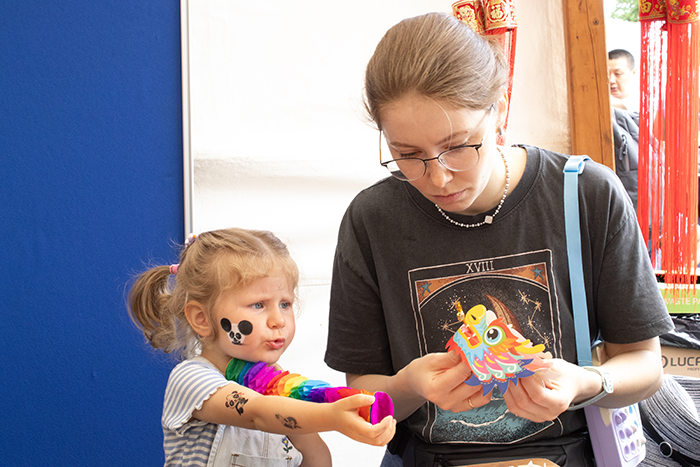 A rendezvény egyik fénypontja az autentikus oroszlántánc volt, amely hatalmas sikert aratott a legkisebbek körében. Emellett az arcfestés is nagy népszerűségnek örvendett, a gyerekek különböző autentikus kínai motívumból választhattak. A leggyakrabban sárkányt és pandafejet kértek, mely motívumokat önkénteseink a legnagyobb örömmel festették fel a vidám gyerekek arcára.