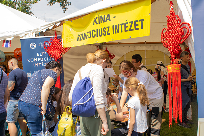 Az ELTE Konfuciusz Intézet standjánál a látogatók a kínai kalligráfia művészetével is megismerkedhettek, ahol a gyerekek saját nevüket írhatták le kínai írásjegyekkel. Emellett papírsárkányt is hajtogathattak, kínai sakkjátékra hívhatták ki Intézetünk tanárait, de sátrunkban létrehoztunk egy színezősarkot is, mint minden évben, idén is Intézetünk standjánál volt a legnagyobb sürgés-forgás.