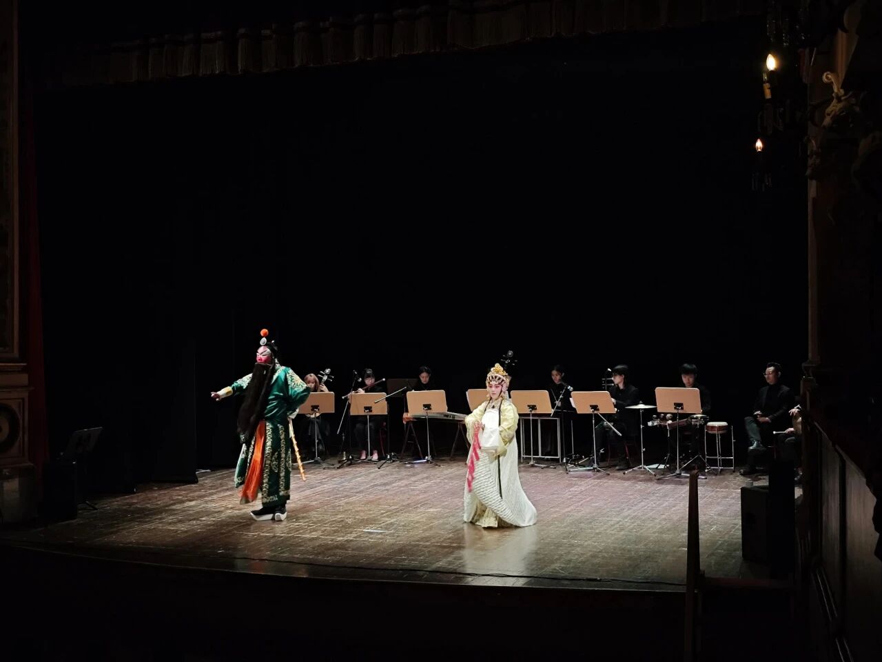 随后的演出以《天女散花》的翩跹舞姿拉开序幕,《千里送京娘》的婉转唱腔、《樊江关》的铿锵武戏动作接连登场,配以二胡、古筝等传统乐器现场演奏,共同营造出一个穿越时空的东方美学场域,赢得观众阵阵掌声。本次演出不仅展示了粤剧作为联合国人类非物质文化遗产的艺术魅力,也为中西方传统艺术的交流互鉴搭建了新的桥梁。通过戏曲这一独特文化载体,中意两国的文化共鸣进一步增强,为双方在艺术教育与人文领域的深入合作注入了持久动力。