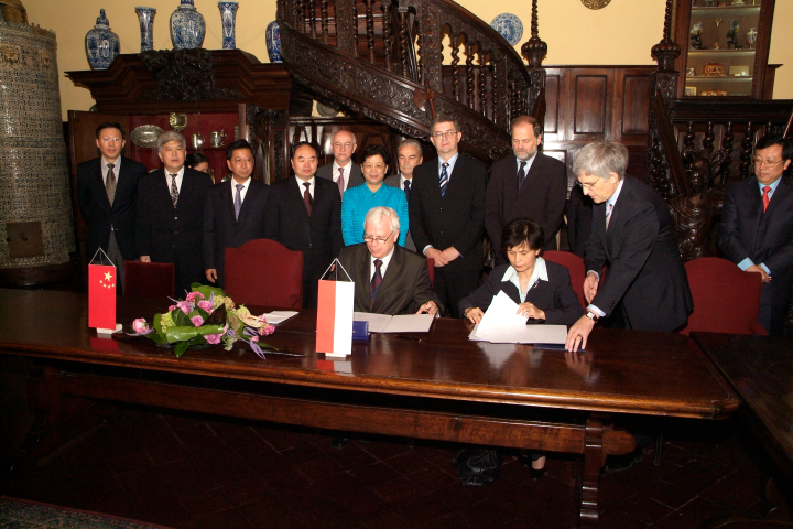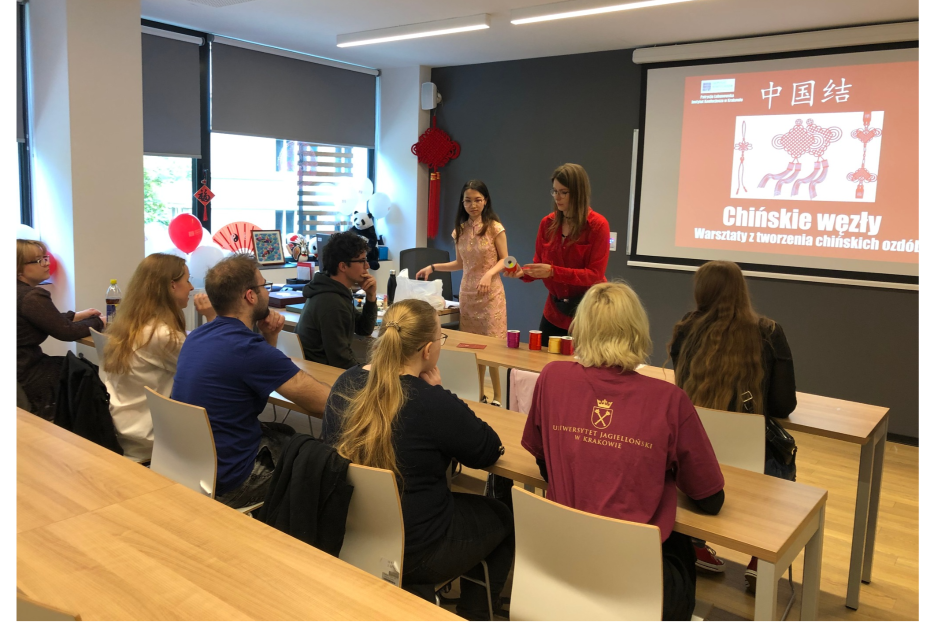 克拉科夫孔子学院成立于2006年9月29日,由北京外国语大学与波兰雅盖隆大学共同建设,是波兰第一所孔子学院。克拉科夫孔子学院2016年荣获“先进孔子学院”表彰,2019年成为“示范孔子学院”并举行揭牌仪式。克拉科夫孔子学院示范孔院大楼位于克拉科夫市中心,毗邻克拉科夫国立博物馆和雅盖隆大学图书馆,其建筑面积超过1000平方米,建筑简洁流畅、装饰朴素文雅,充分融合了中波两国传统文化的元素。楼内设有多间多媒体教室、语音教室、书法教室和多功能礼堂等。孔院还有独立的图书馆及阅览室,并且与雅盖隆大学图书馆联网,面向孔院学员及大学生开放。学员可以借阅与中国或中文学习相关的图书,使用多媒体图书设备。图书馆馆藏的有关中国的图书十分珍贵,吸引了大批读者。示范孔院大楼为克拉科夫孔子学院的中文教学和文化活动提供了更智能的基础设施与更舒适的环境。