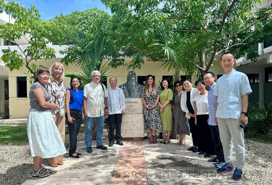 会前,Adreas Aluja博士带领各位来宾参观了尤卡坦自治大学孔子学院礼堂及教学大楼、孔子雕像等教学场地和设施。院长们纷纷对尤大孔院的办学条件表示赞赏,并肯定了孔院作为示范孔子学院在推动中文教学及中墨文化交流中所做的积极贡献。