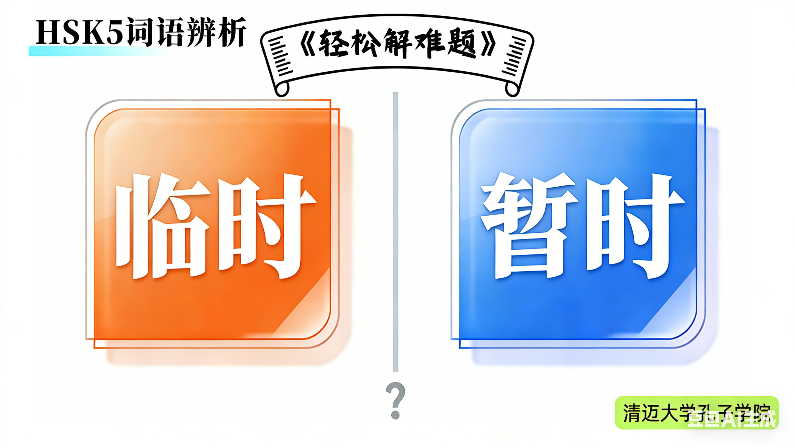 本视频以汉语易混淆词语 “临时” 和 “暂时” 为核心,以二者的语义差异与用法边界为出发点,用清晰的例句对比、场景化用法拆解,帮助汉语学习者精准掌握辨析技巧。课程中,李老师通过典型语境举例、语法功能解析,直观呈现 “临时” 的非预先设定属性与 “暂时” 的时间短暂限定特点,搭配实用练习场景,让学习者快速区分两者在句式搭配、语义侧重上的不同。视频以简洁易懂的讲解风格,助力汉语学习者突破词语辨析难点,提升汉语表达的准确性与规范性。