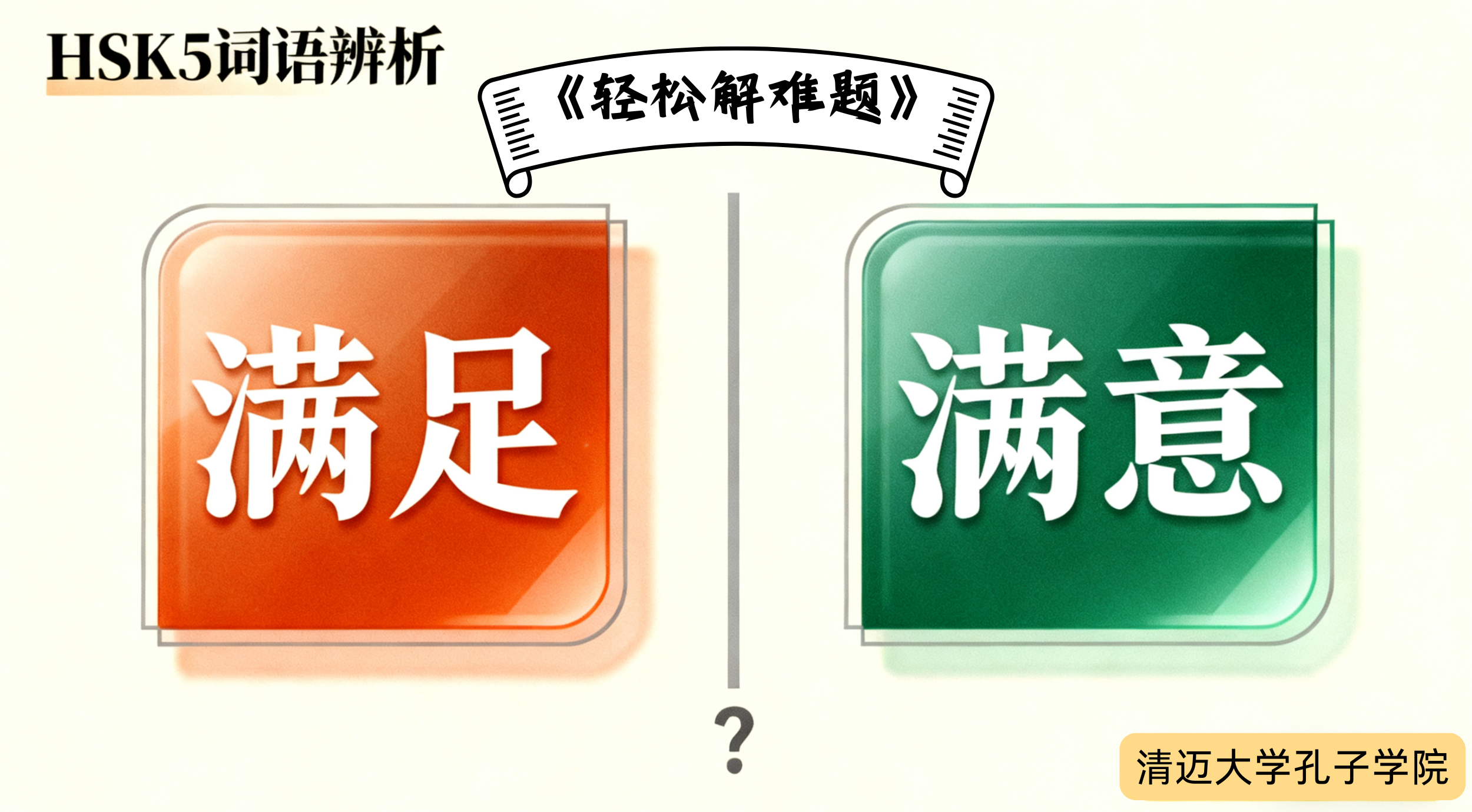 本视频以HSK5级考生的实际备考需求为出发点,聚焦易混淆词语的精准区分。视频中,李老师通过拆解词义核心差异、梳理搭配习惯、列举典型例句等方式,清晰阐释“满足”侧重需求得到实现的状态,“满意”侧重主观上的认可态度。同时结合HSK考试常见语境设计练习场景,帮助学习者掌握二者在不同句式中的正确用法,有效解决词语运用误区。整段讲解逻辑清晰、重点突出,既贴合汉语水平考试的考点需求,又兼顾实用性与易懂性,为HSK5级学习者提升词语辨析能力提供了优质指导。